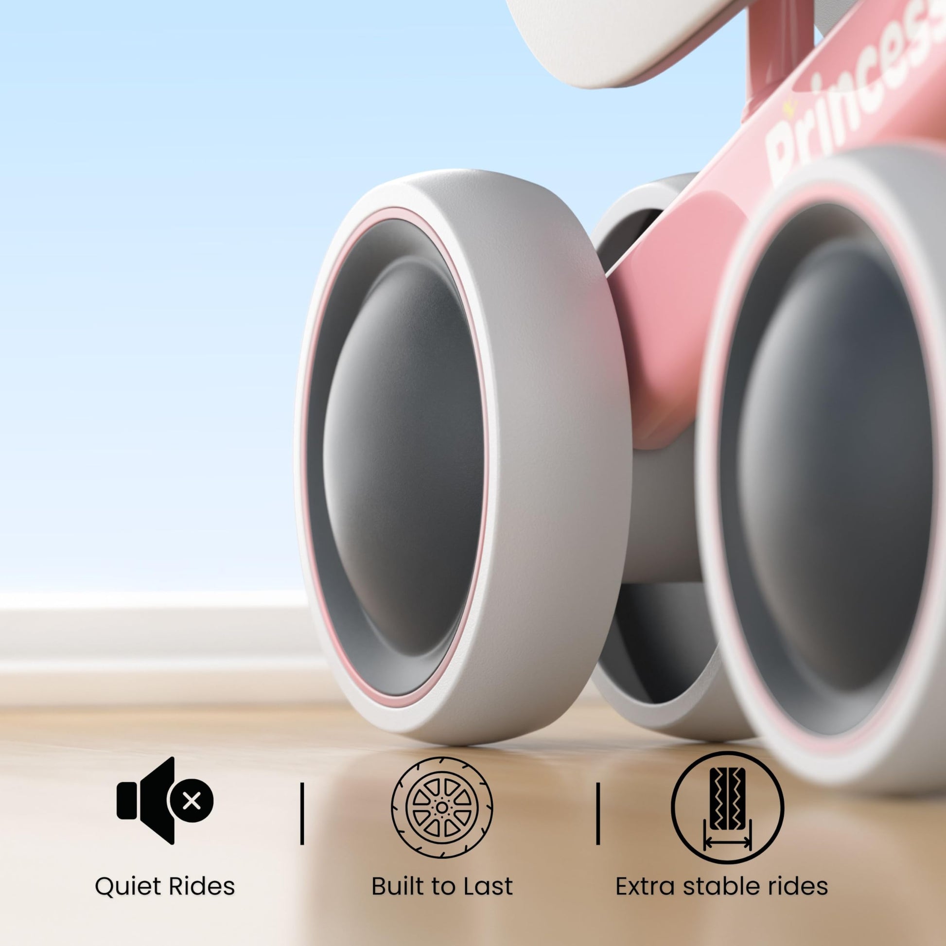 • Bike body is made of high end sturdy carbon steel, soft non-slip EVA handlebar and cushioned seat to provide a stable and comfortable position for your baby to hold and sit. Silent wheels works indoor and outdoors