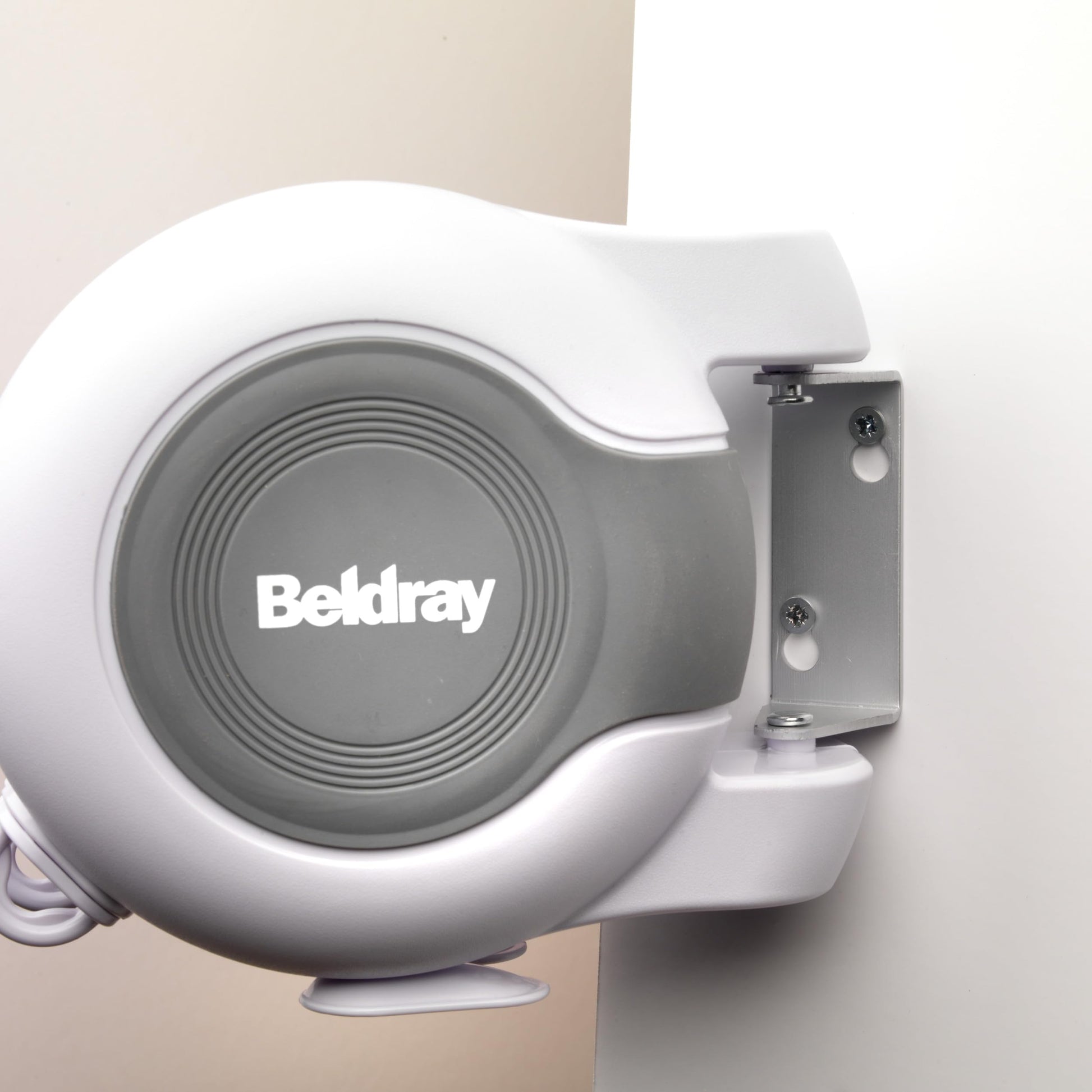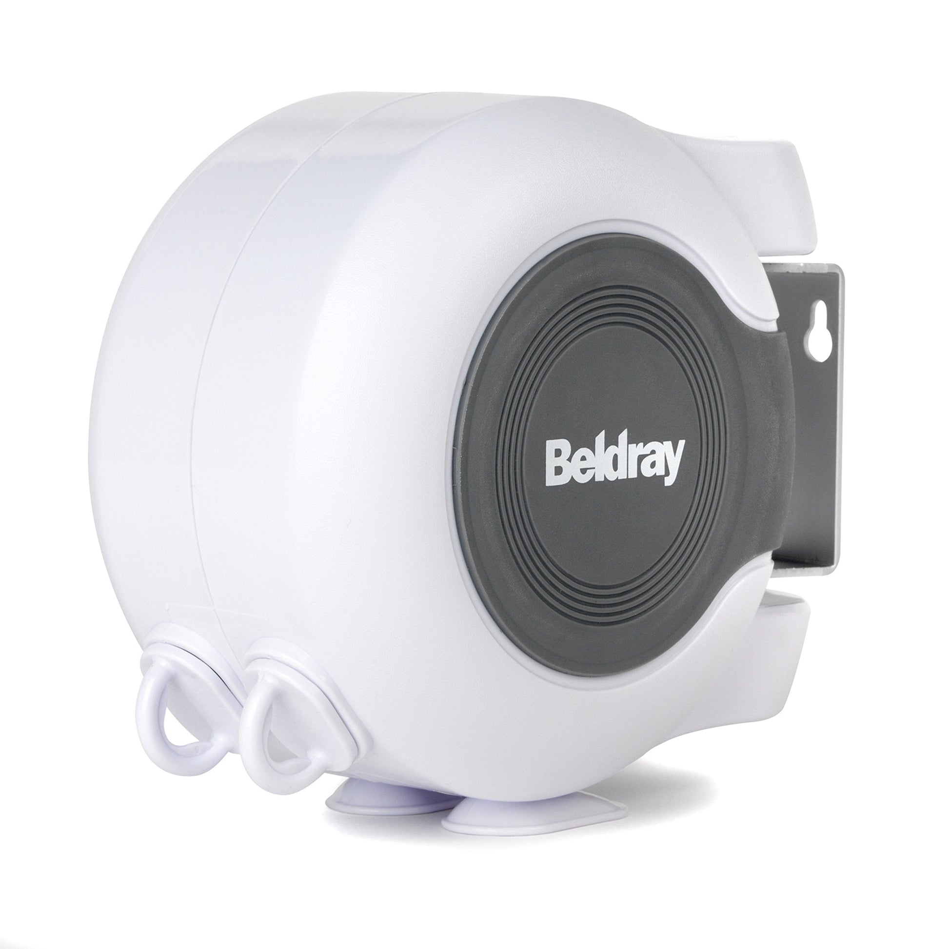 Ideal if you would prefer not to have an airer or washing line permanently cluttering up your garden, this Beldray retractable clothes line allows you to hang your washing when you need to. Suitable for outdoor use, the versatile washing line retracts when not in use and has two adjustable lines for a drying space of 26 metres. Simply fit the attached wall bracket, then pull out the line and securely hook to a suitable spot before pegging up a freshly washed load.
