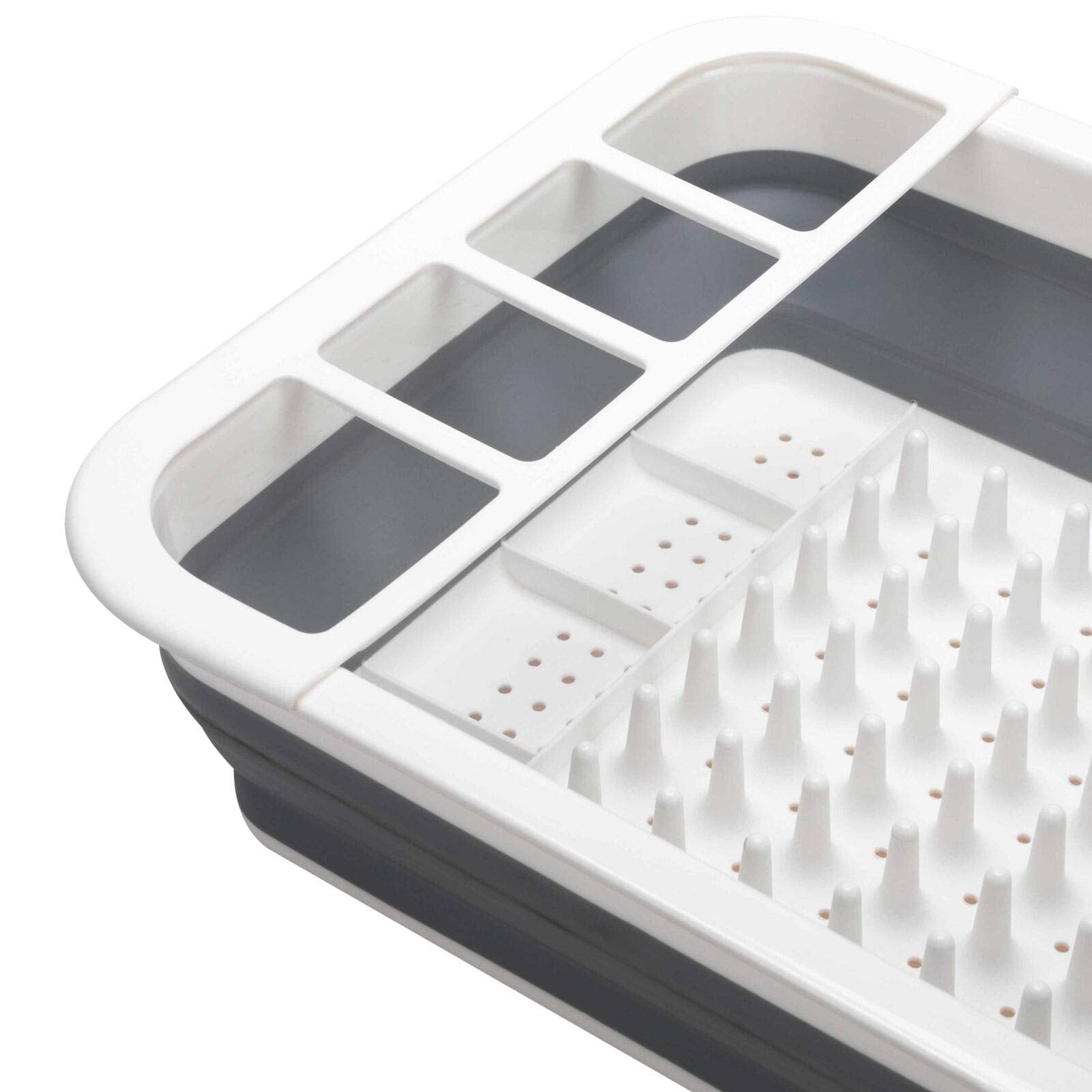 • No need to keep this collapsible draining board on your kitchen worktop – it conveniently folds down to fit in the smallest of spaces, The ultimate camping convenience if you need to quickly wash up, the drainer also has a handy crockery holder and cutlery divider
