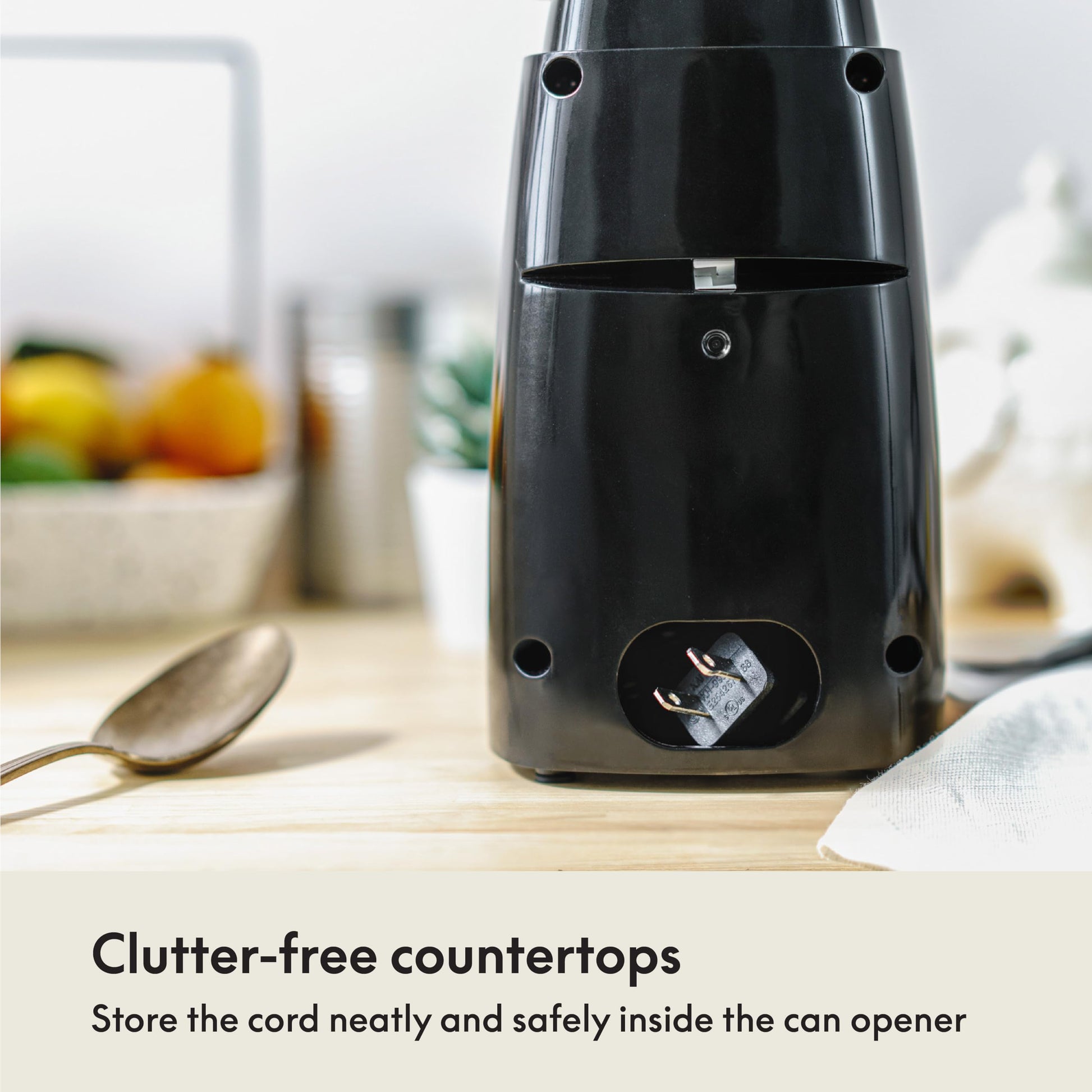 BELLA Electric Can Opener and Knife Sharpener, Multifunctional Jar and Bottle Opener with Removable Cutting Lever and Cord Storage, Stainless Steel Blade, Black