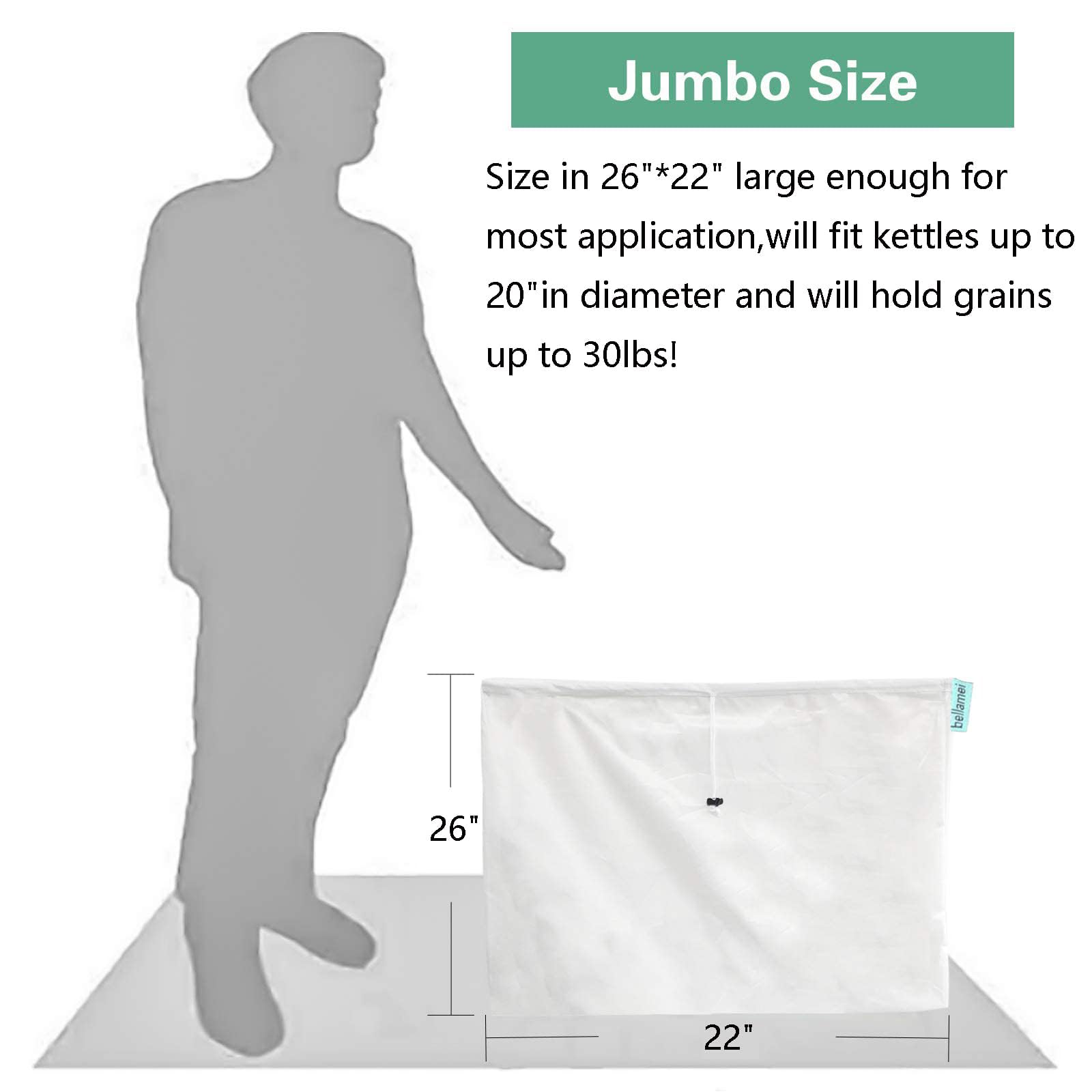 • Extra Large Size: 2 extra large brew in a bag size in (26' wide and 22' height), ensure you can brew even the largest of recipes without spilling any grain. Will fits to 17' in diameter and will hold up to 20 lbs of grain, from jams to cold brew to cider