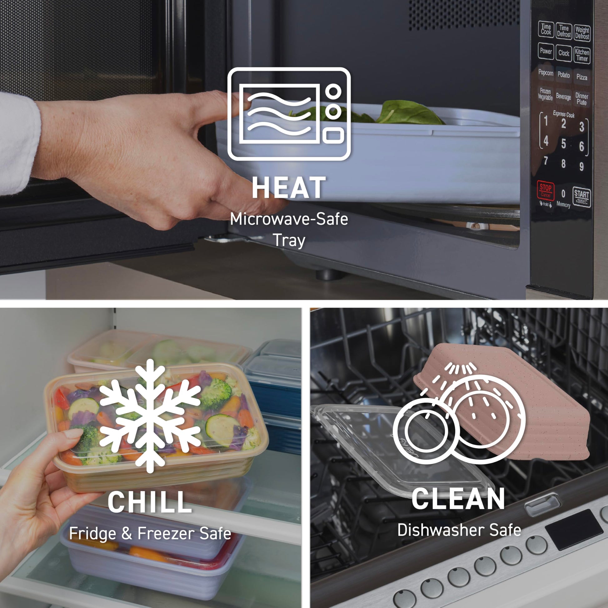 • Microwave, Freezer & Dishwasher Safe: Easy to heat, store, and clean! Safely reheat food from fridge or freezer—microwave trays only. Top-shelf dishwasher safe for hassle-free cleanup; hand-wash lids for best results.