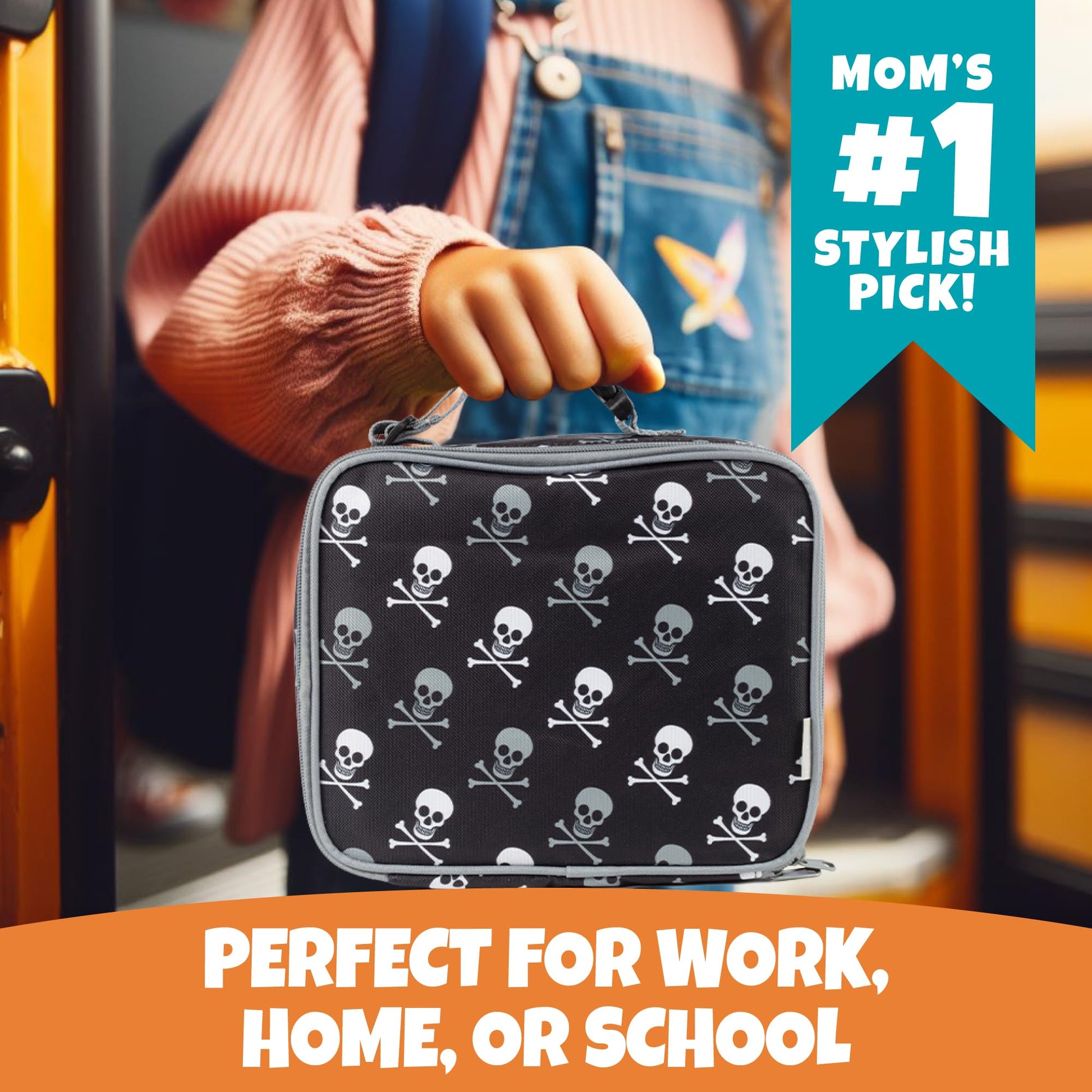 • INSULATED LUNCH BAG & WATERPROOF LINING: Kids will love this durable pirate themed print Bentology insulated lunch tote that keeps food and drinks fresh for hours! Ideal for bringing your lunch or snacks to School, Summer Camp, Daycare and more! Keep lunches mess free with this easy to wipe waterproof lining.