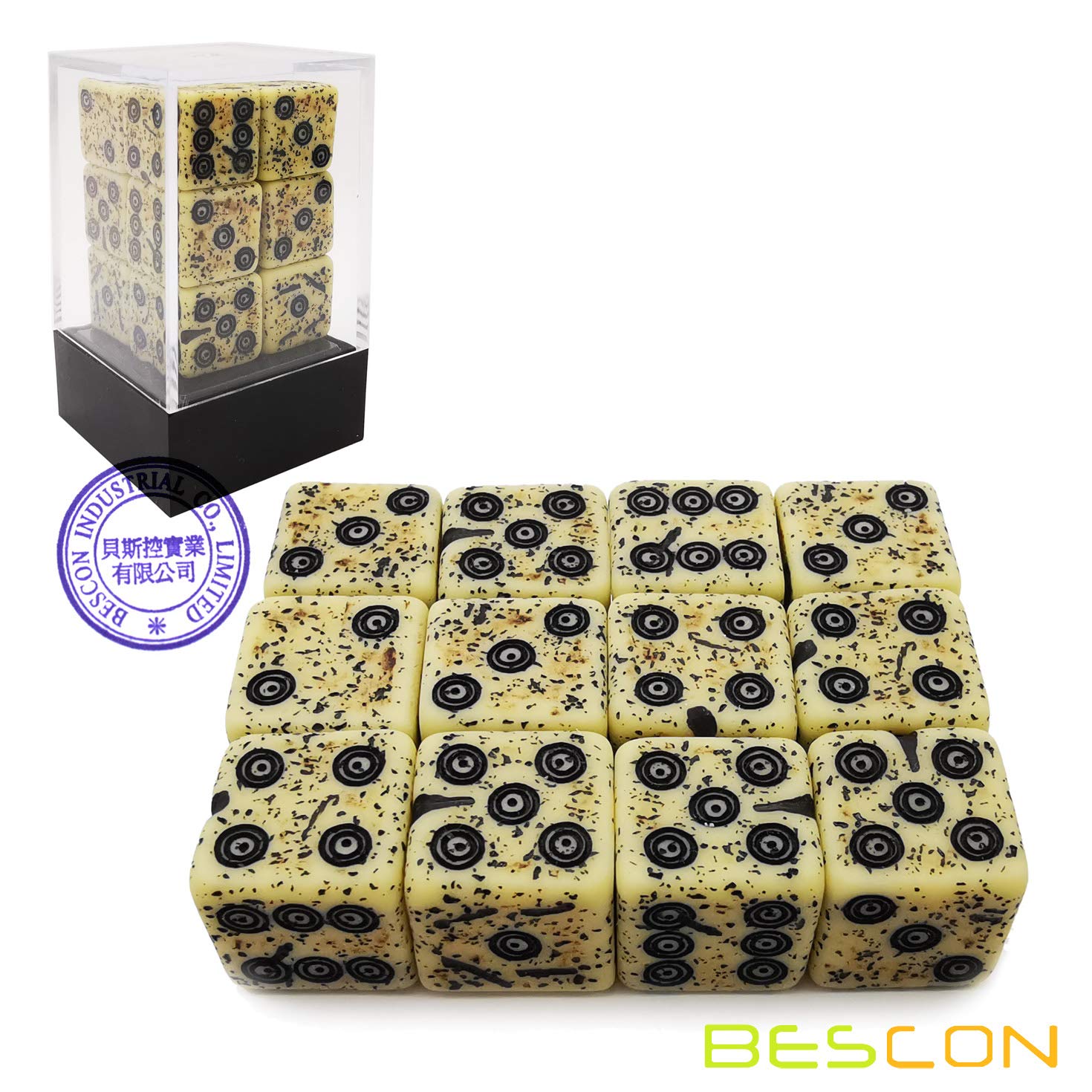 Bescon Old Looking Ancient Bone Dice D6 16mm 12pcs Set, 16mm Six Sided Die (12) Block of Stone Dice