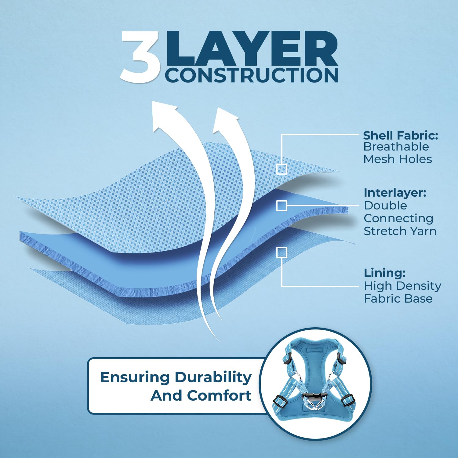 • REFLECTIVE WEBBING: 3M Scotchlite reflective material on the straps of this dog harness enhance your dog’s visibility during those early morning and late evening strolls.
