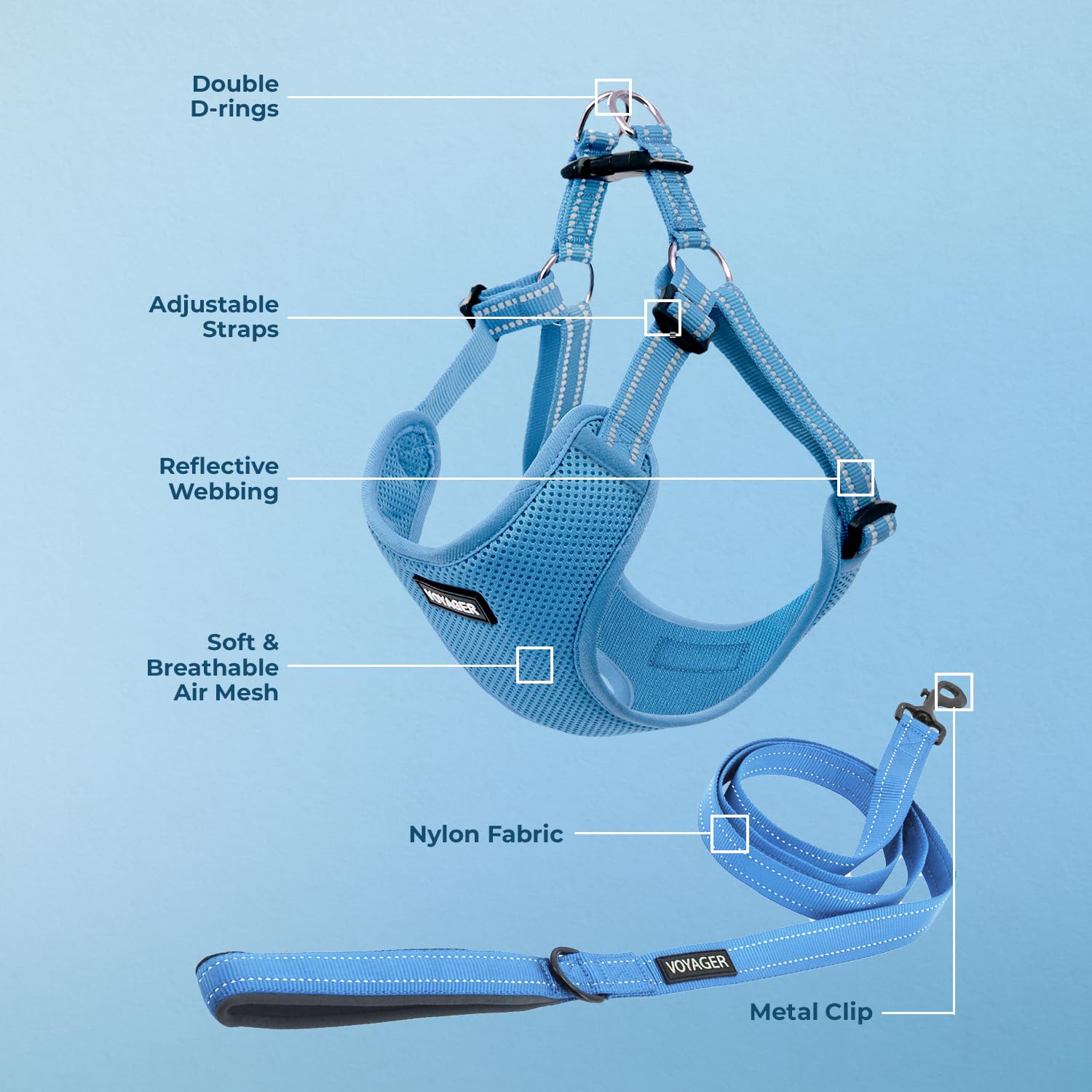 • STEP IN CLIP & GO! Step your dog into Voyager's simple and easy walk vest dog harness. Style it with a matching Voyager Dog Leash. Click ‘Add to Cart’ now!
