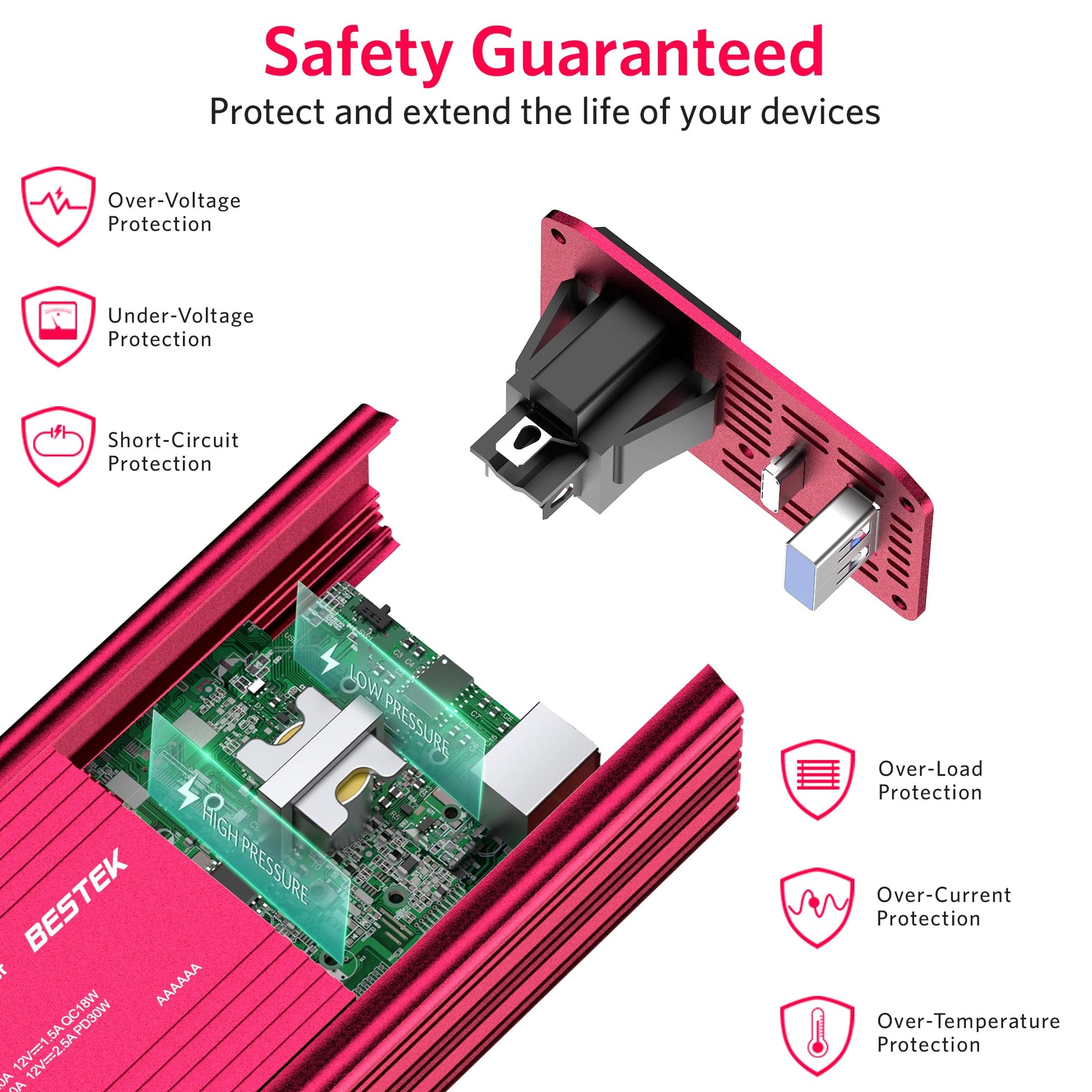 • RELIABLE QUALITY WARRANTY: ETL-certified product ensures safety and quality. If you have any questions or dis-satisfactions with your purchase,24H x 7D technical and friendly customer service support, BESTEK guarantees you a refund within 180 Days, and an 18-Month Product Replacement Warranty.