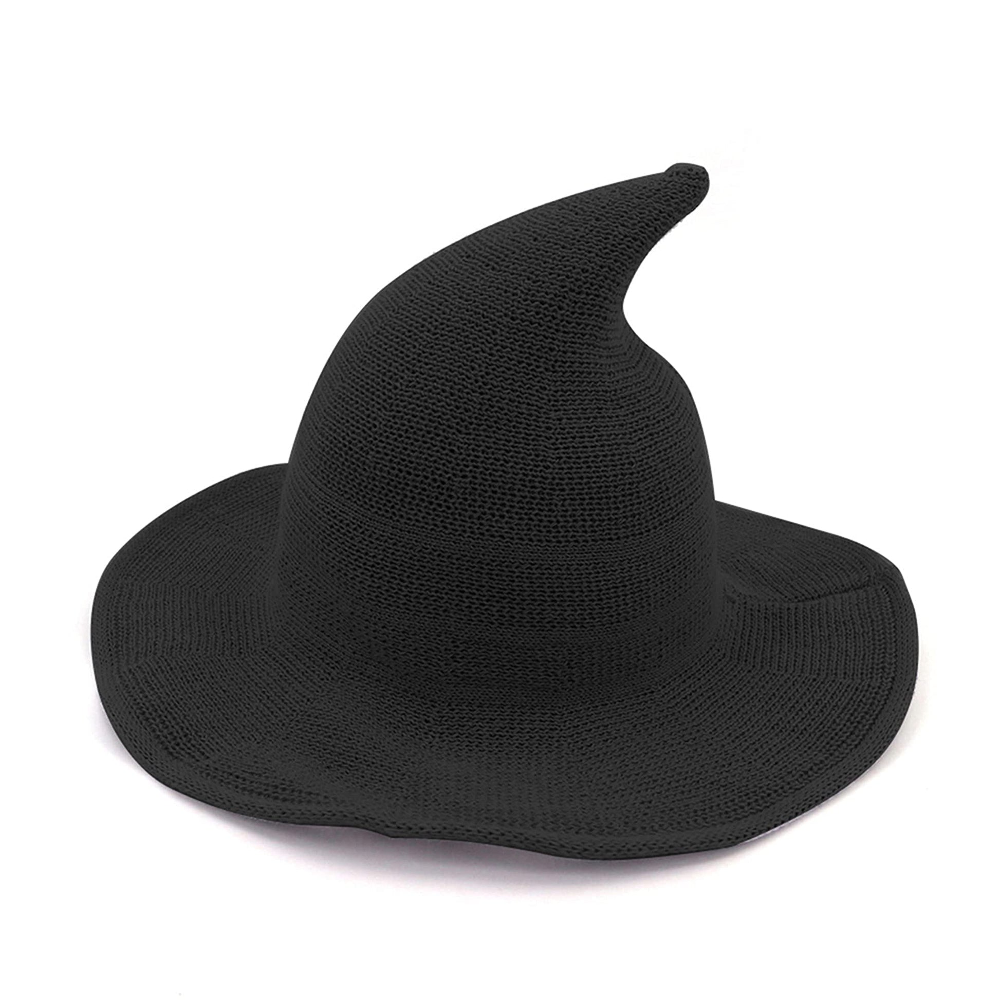 Bestjybt Women Halloween Witch Hat Wool Knitted Cap for Party Masquerade Cosplay Costume Accessory Daily (Black)