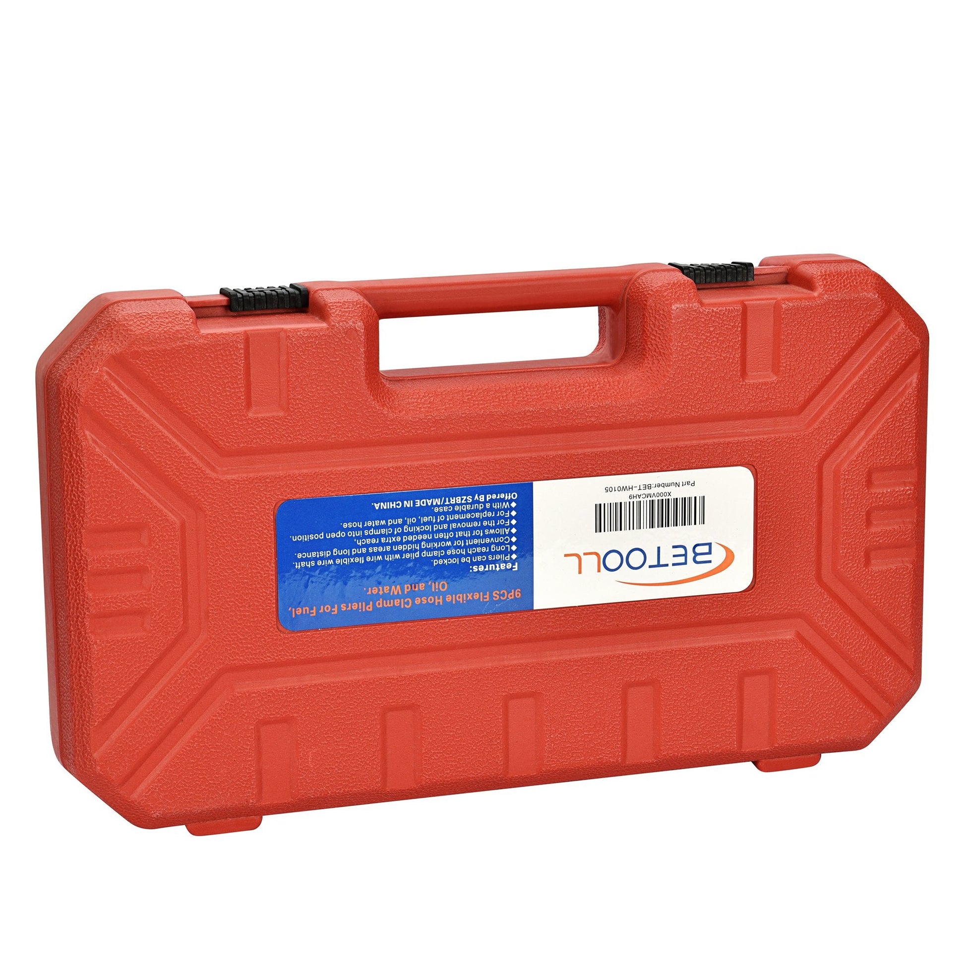 • 9pcs Hose Clamp Pliers Set: (Please recognize the BETOOL brand.) Includes long-reach cabled hose clamp pliers, Clic-R type collar pliers, swivel jaw band clip and spring wire clip pliers, regular and angled flat band hose clamp pliers, hose removal pliers, a dual-headed screwdriver, and a hose hook.