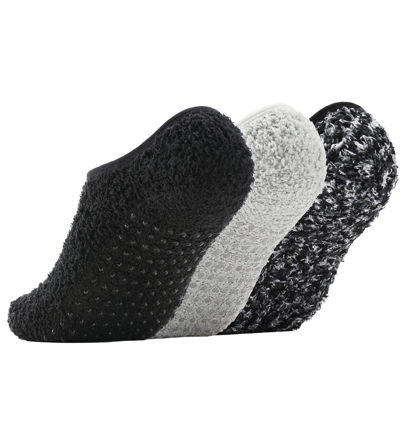 Bevigorio Slipper Socks for Women with Grippers Non Slip Fuzzy Socks with Grips Womens Grippy Grip Hospital Home Gifts 3pairs blackgreymix