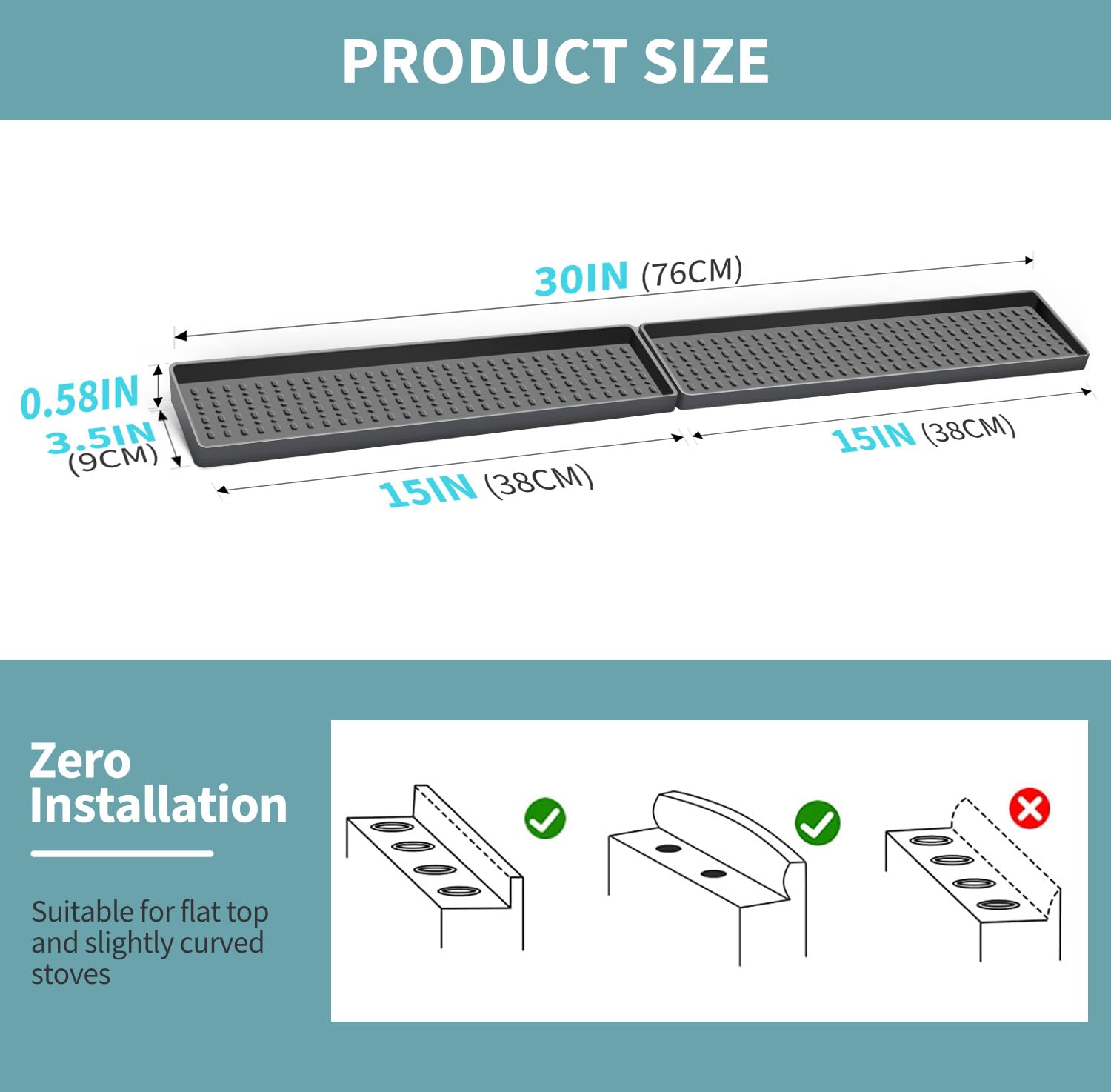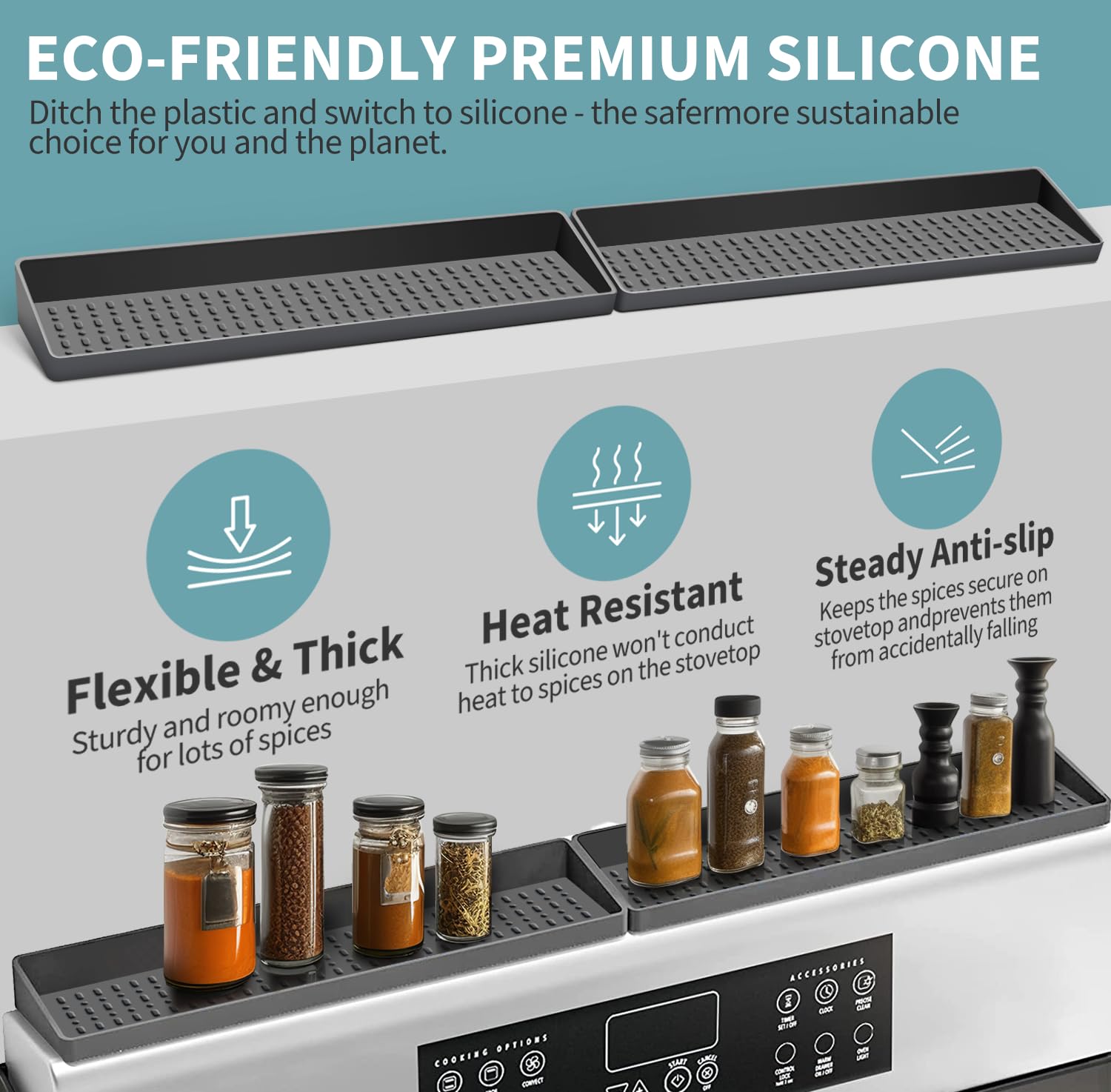 • Suitable for Most Stoves: The total size of the stove magnetic shelf is 30*3.5*0.59inch/76*9*1.5cm. The 2-section design of the flexibility spice racks fits both flat stoves and slightly curved stoves, and most stoves in the market. The spices organizer of the silicone material is thin and soft, even if there is a switch on the stove, it is perfectly compatible.If you are unsure whether the spice rack will fit your stove, measure your stove before buying.