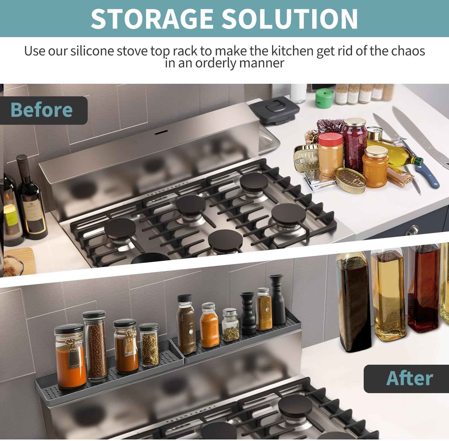BFONS 30" Magnetic Stove Top Shelf Spice Rack Storage, Silicone Top Heat Material Stove Rack Seasoning Organizer Kitchen Gadgets Kitchen Organization(Grey)