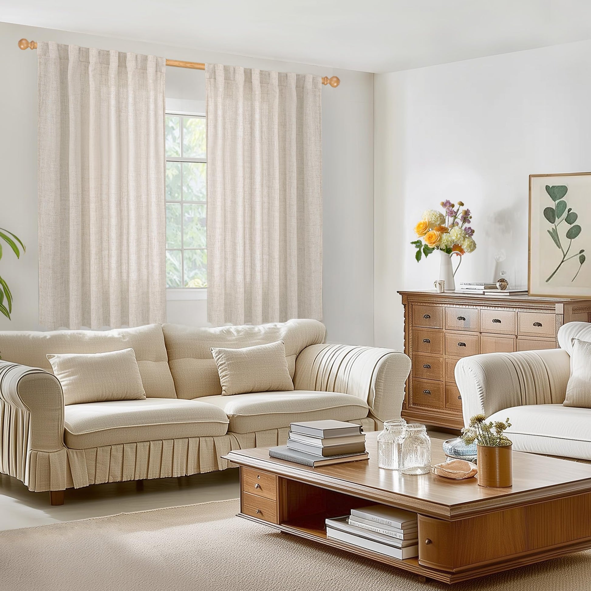 • LINEN TEXTURE: These rustic linen curtains are made of elegant weave faux linen with visible fine texture, classic but not outdated, giving a three-dimensional layering of color and touch. With a raw and beautiful drape. The premium soft touch of these elegant linen blend curtains adds a refreshing charm to your windows, available in a variety of colors and sizes to perfectly match any home style. It is friendly and safe for children and pet.