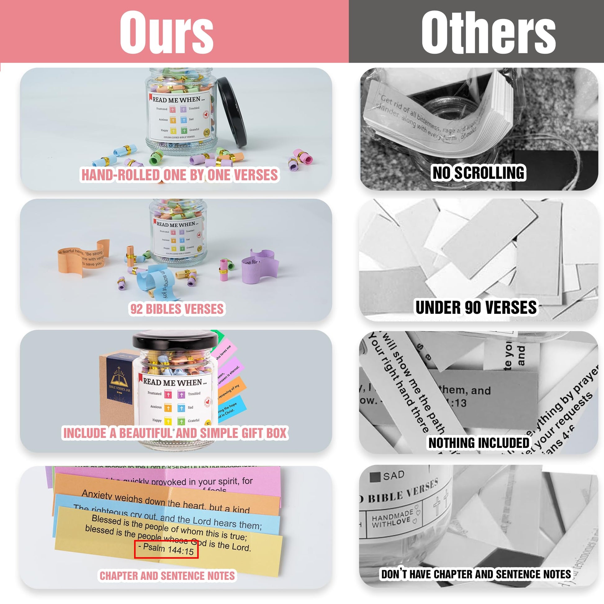 • 🙏 [92 Hand-Rolled Bible Verses] Each jar contains 92 scripture scrolls, individually rolled and tied with care, making it a meaningful choice for bible gifts for women or thoughtful gifts for women.