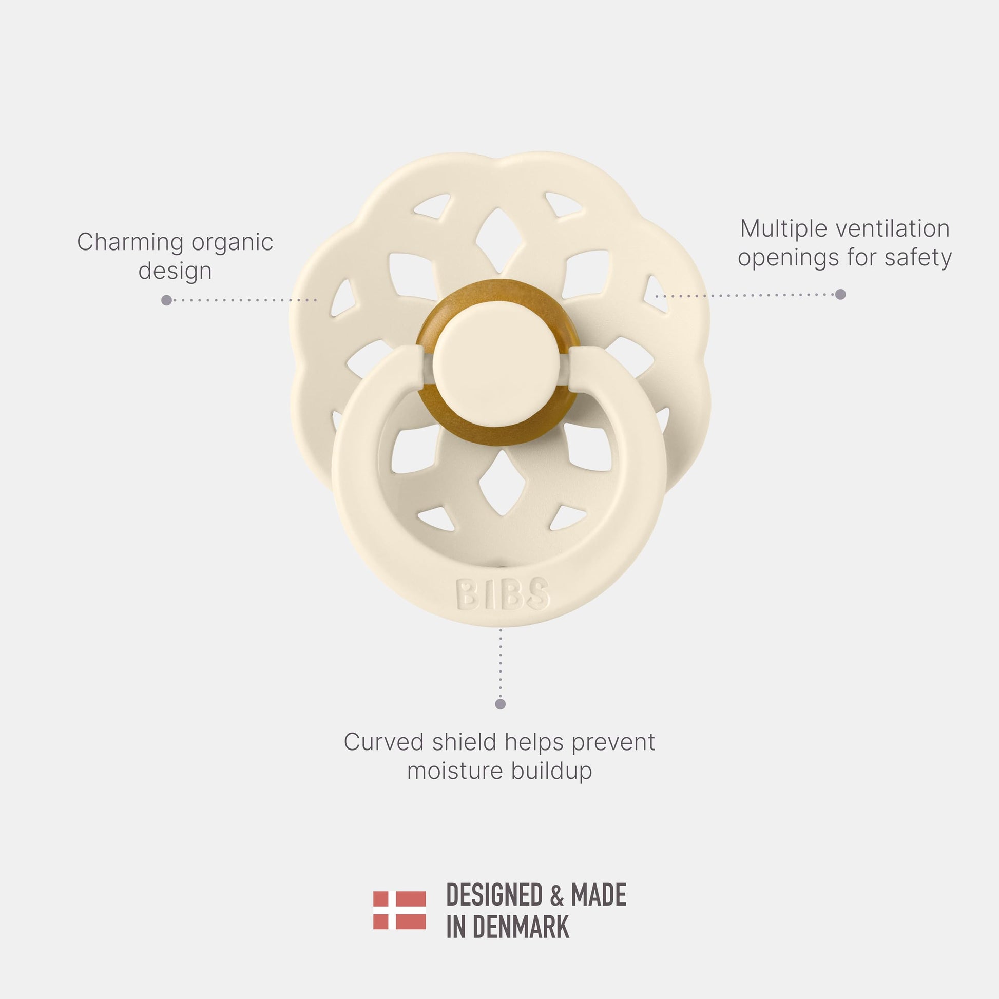 BIBS Pacifiers - Boheme Collection | BPA-Free Baby Pacifier | Made in Denmark | Set of 2 Blossom/Dusky Lilac Color Premium Soothers | Size 0-6 Months