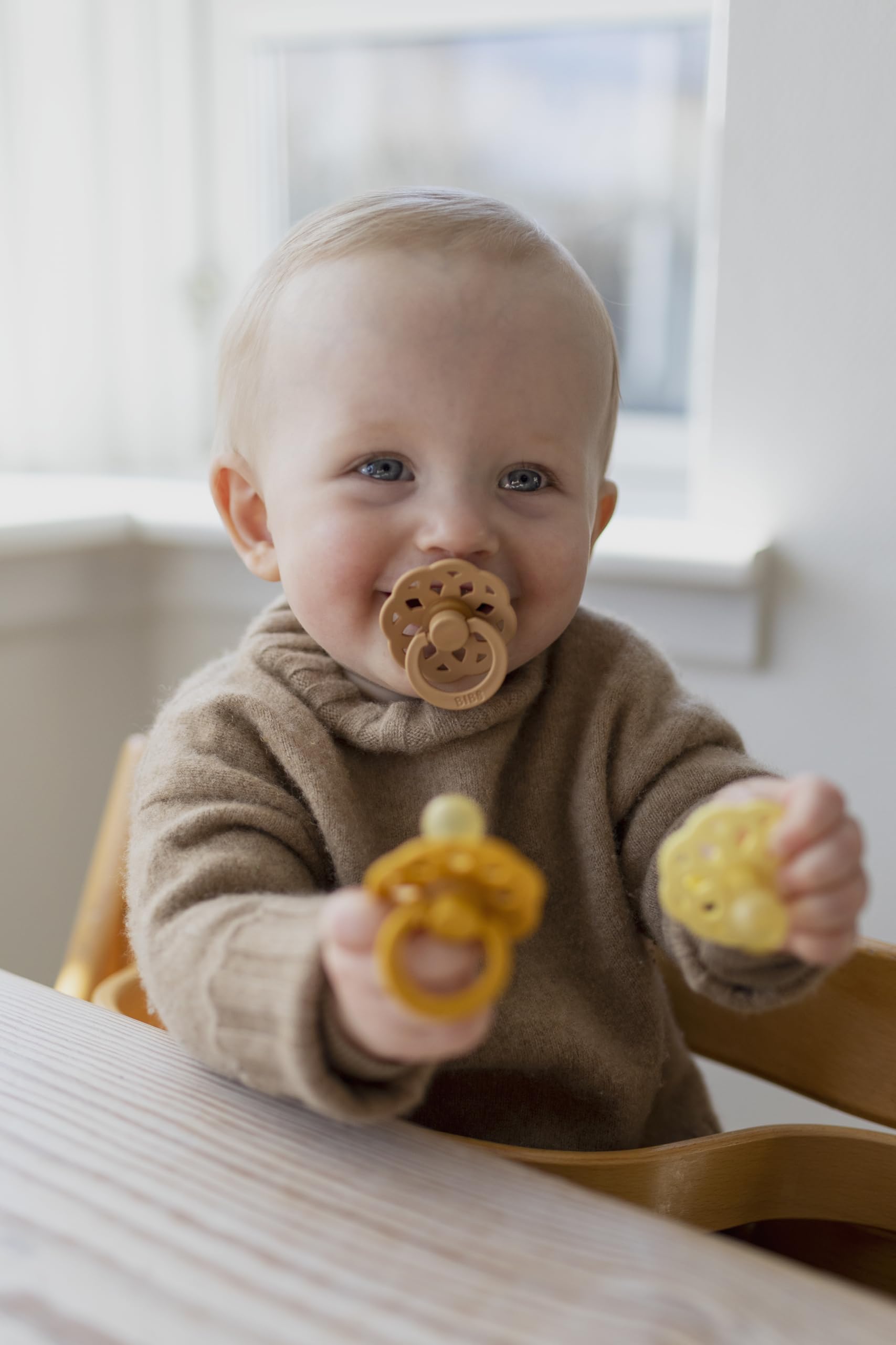 • ๐—–๐—”๐—ฅ๐—˜ ๐—œ๐—ก๐—ฆ๐—ง๐—ฅ๐—จ๐—–๐—ง๐—œ๐—ข๐—ก๐—ฆ: Sterilize each pacifier before use by pouring boiling water over it, squeezing any remaining water out, and letting dry for 4โ€“6 hours. We recommend a replacement every 4-6 weeks for both safety and hygienic reasons. Rubber latex is a natural material and is affected by sunlight, high temperatures, and moisture. If you experience a change in the material, the pacifier must be replaced.