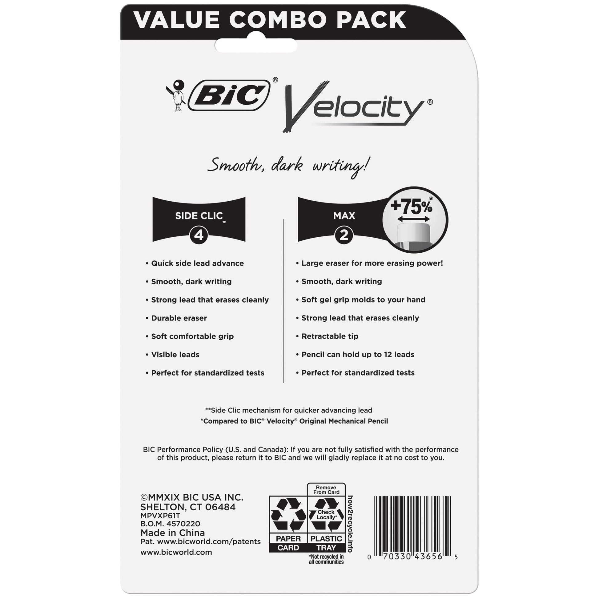 BIC Velocity Max mechanical pencils have +75% larger erasers and No. 2 lead making them perfect for test time