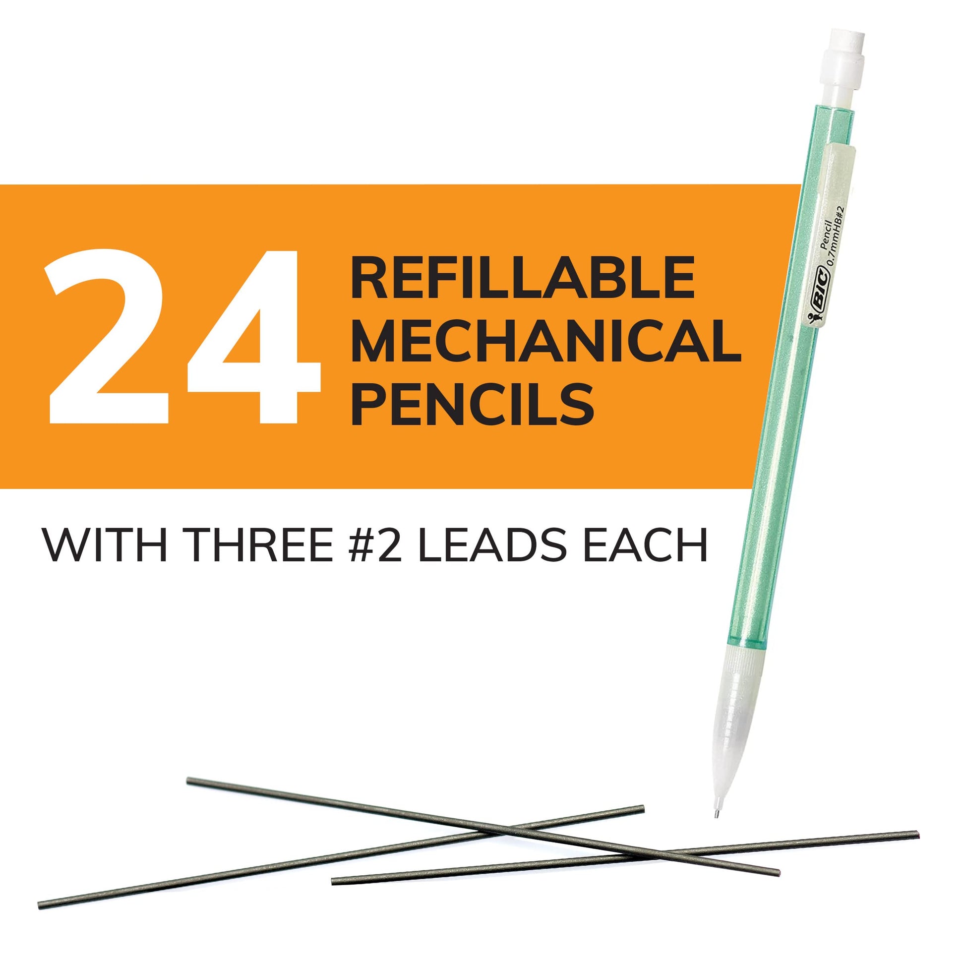 BIC Xtra-Sparkle Number 2 Mechanical Pencils With Erasers, Medium Point (0.7mm), 24-Count Pack, Mechanical Pencils for School Supplies