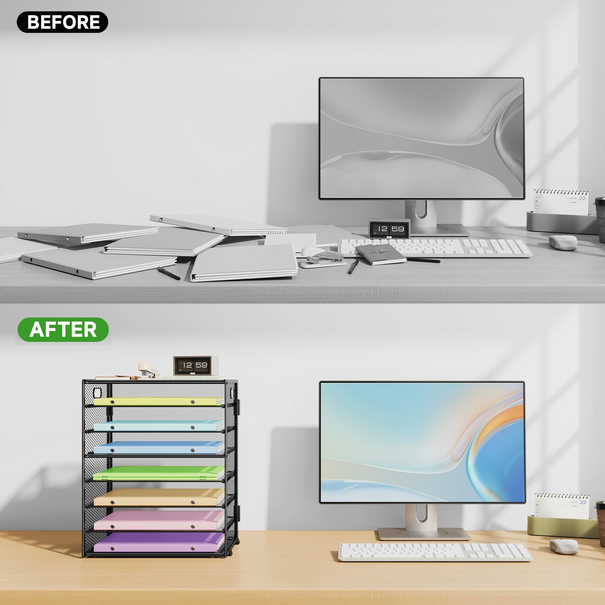 • 【Perfect Desk Paper Organizer Tray】Keep your desk tidy and clutter-free with our 8-Tier Paper Organizer with Handle. This letter tray organizer offers ample space for sorting and storing papers, letters, printing paper, books, folders, bills, magazines, and more.