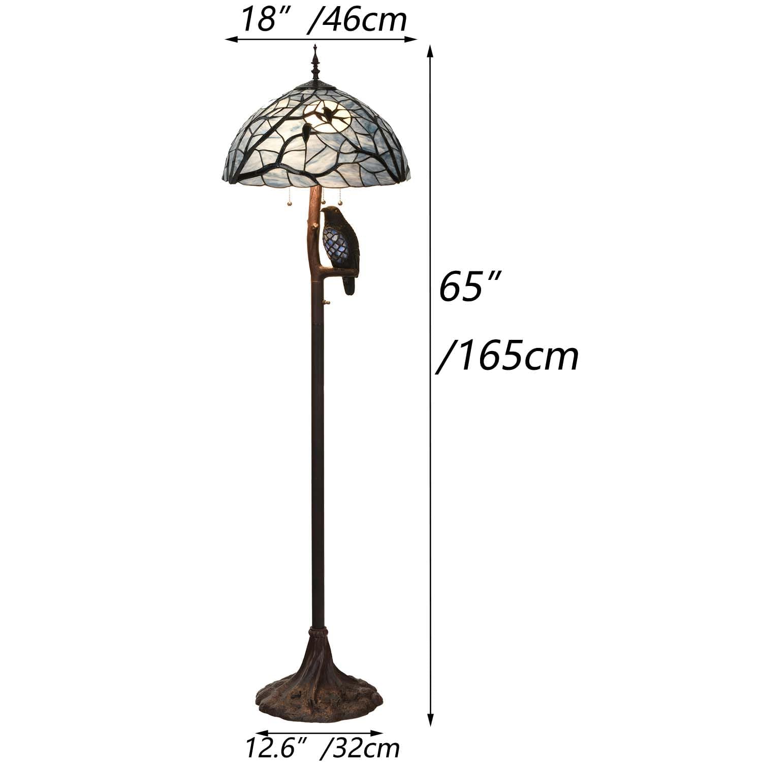 Bieye L10882 Ravens Sitting on Bare Tree Branch Against Full Moon Tiffany Style Stained Glass Floor Lamp with Raven Night Light Double Lit for Halloween Décor, 4-Light, 65 inches Tall (Dark Blue)