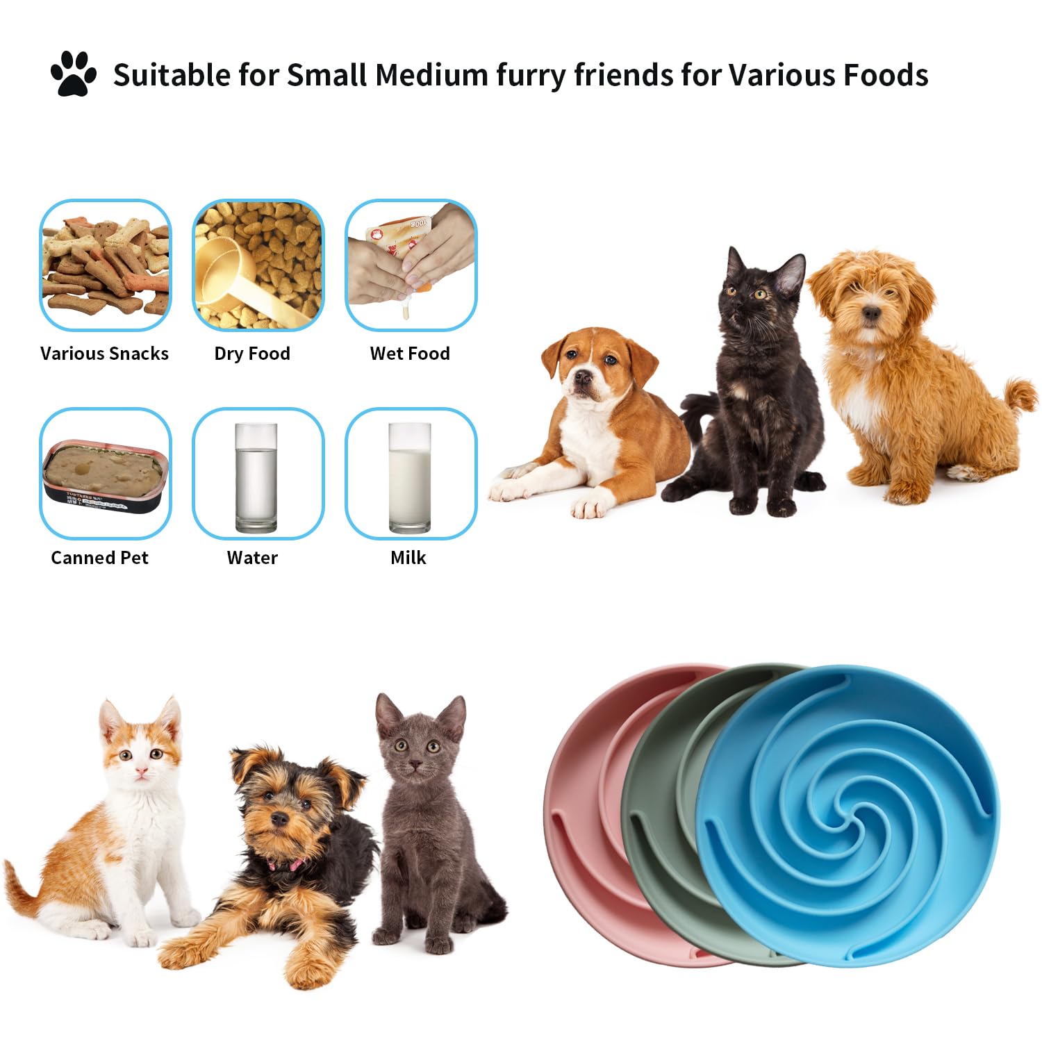 • The perfect size: This interactive 7.5-inch x 1.2-inch silicone slow-feeding dog bowl holds up to 1-2 cups of dry, wet, or fresh food, making it ideal for all dogs cats.