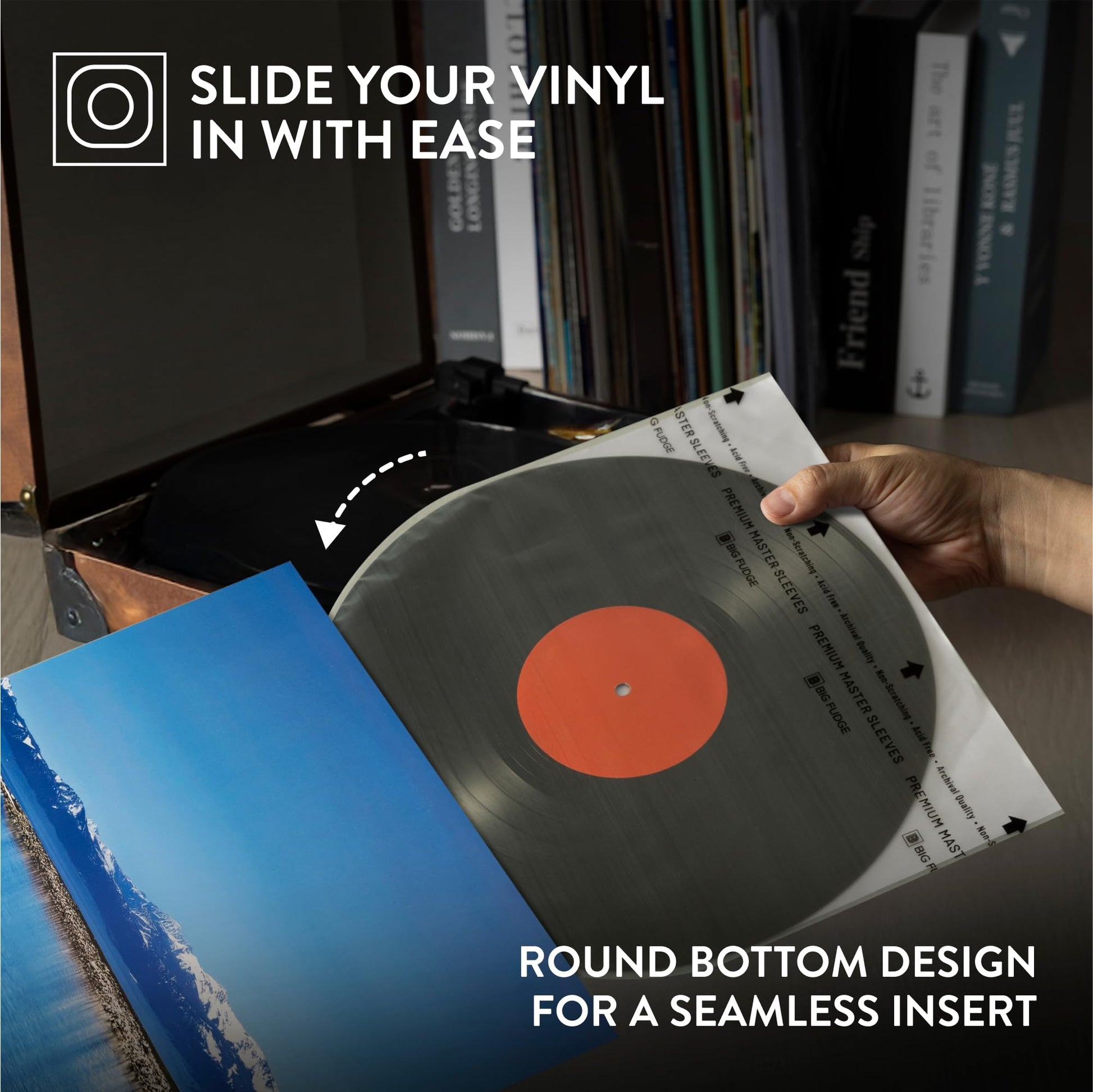 • Unique Round Bottom Design: Stay ahead of the curve with our round bottom sleeve design. This shape allows for easy insertion and removal of your vinyl records, protecting them from wear and tear.