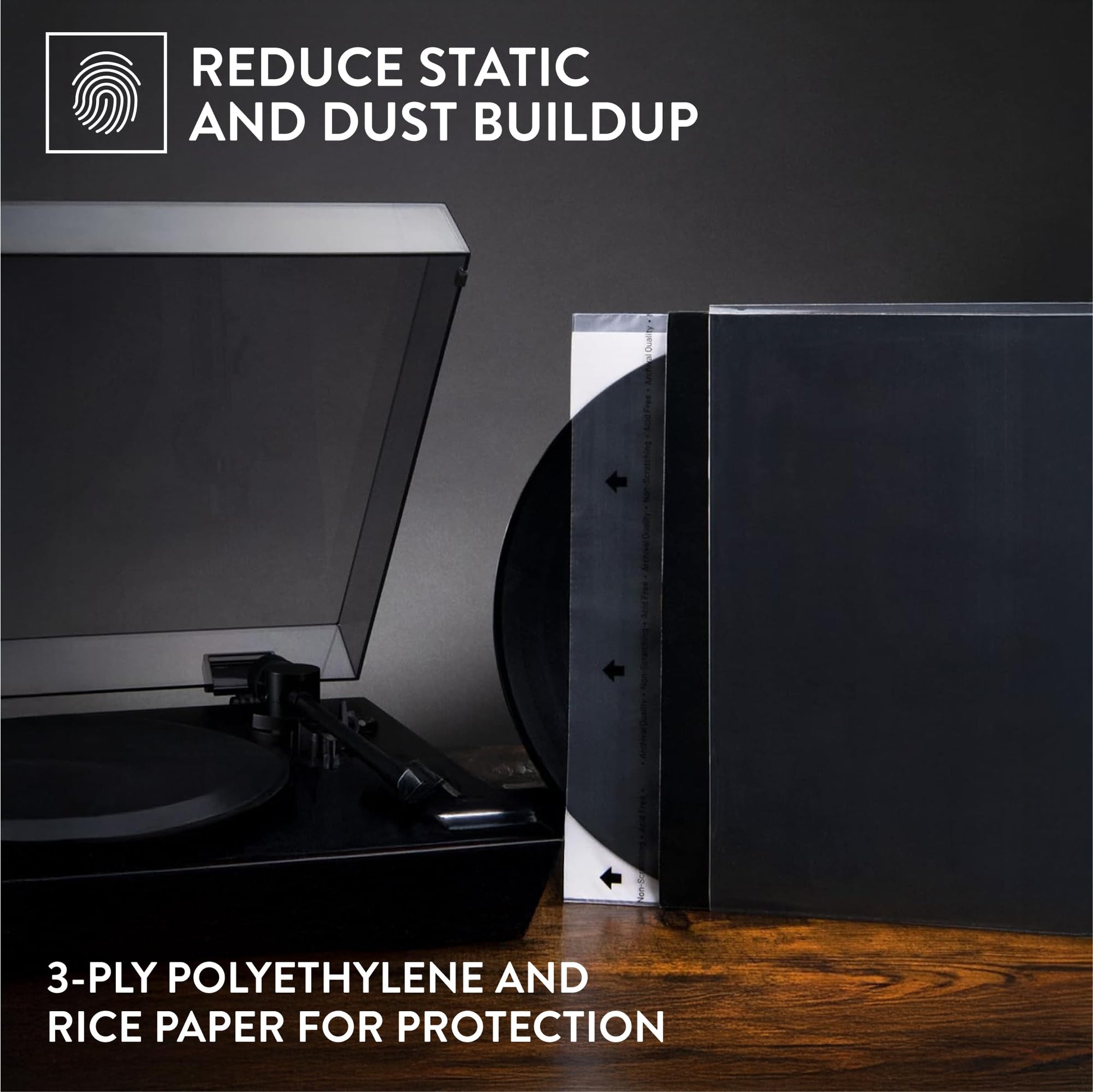 • Non-Toxic Construction: Our non-toxic sleeves ensure your records are stored safely without exposure to harmful chemicals. Enjoy peace of mind knowing your vinyl collection is stored in a healthy environment.