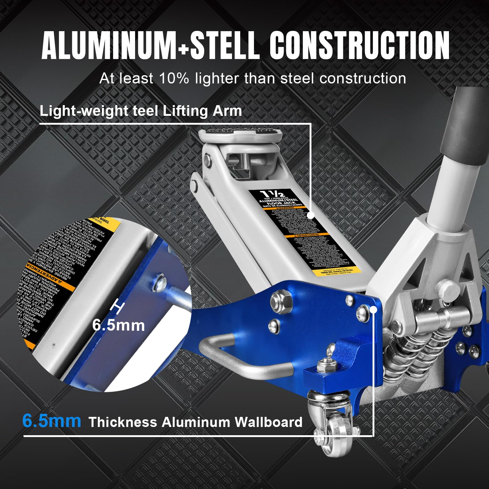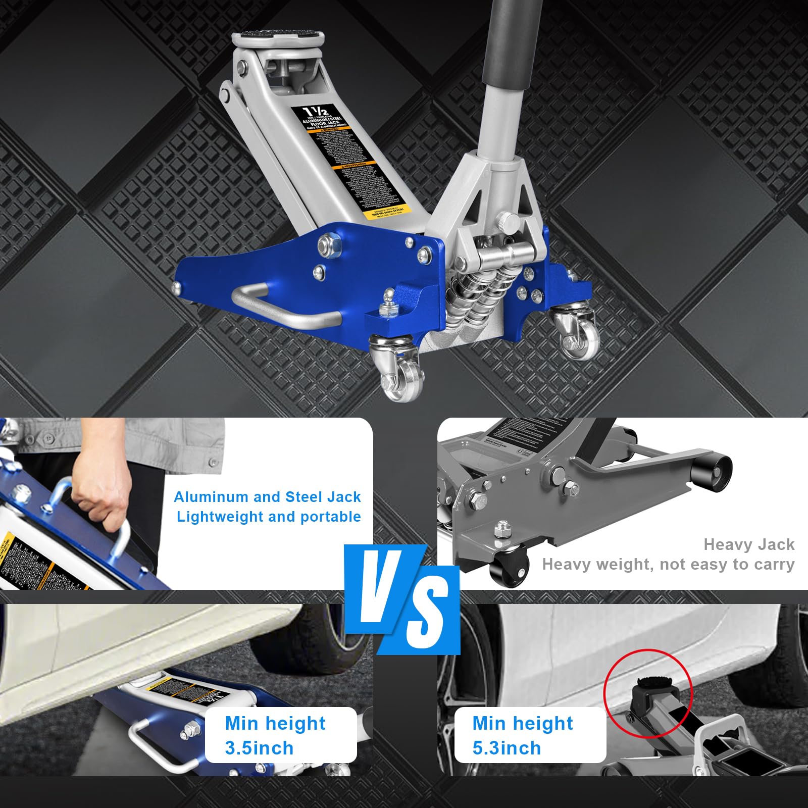 BIG RED T815016L Torin Hydraulic Low Profile Aluminum and Steel Racing Floor Jack with Dual Piston Quick Lift Pump, 1.5 Ton (3,000 lb) Capacity, Blue, T815016L