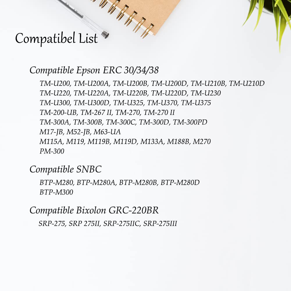 • Work for Epson ERC-30, ERC-34, ERC-38, M188B, TM-U220, TM-U220B; SNBC BTP-M300; Bixolon GRC-220BR, SRP-275, SRP-275III. More models please refer to the picture.