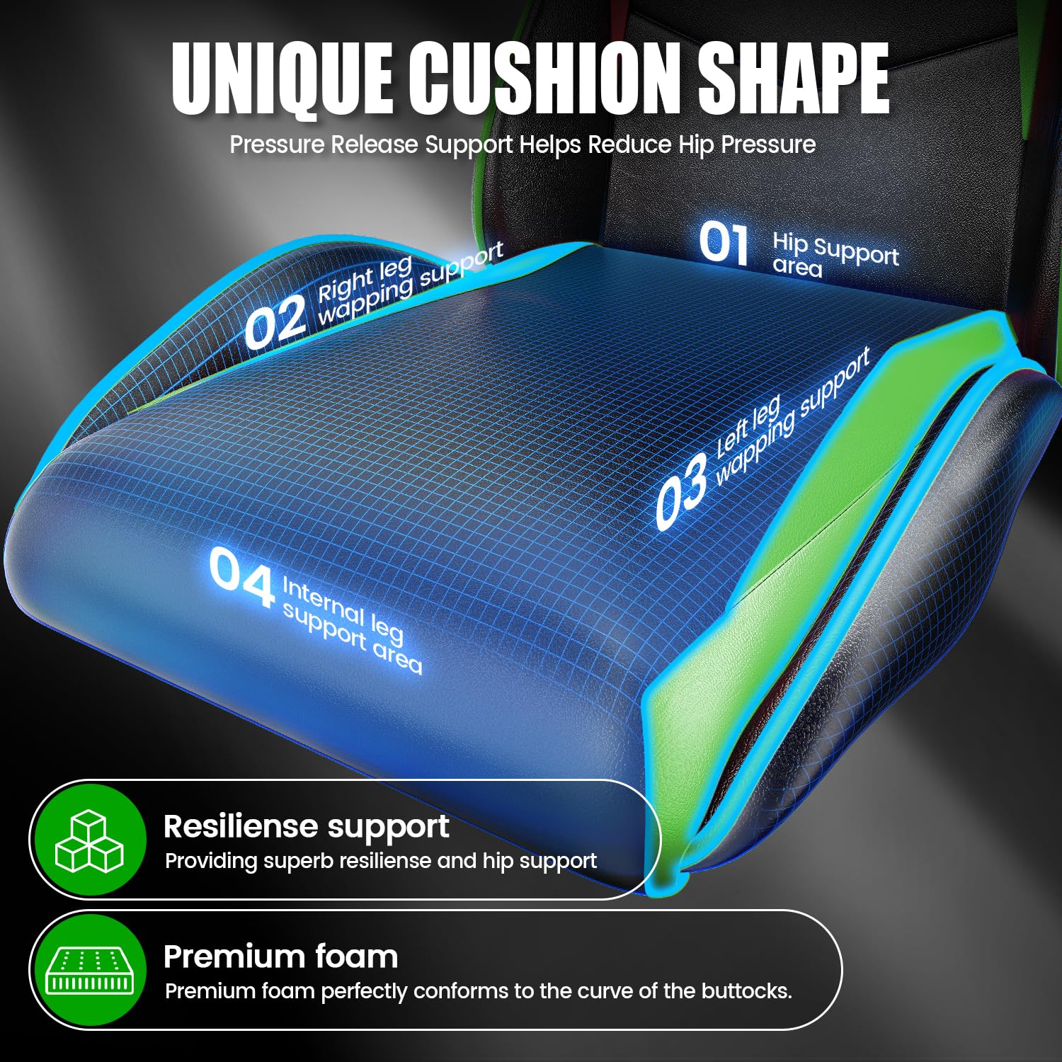 • 💺【Optimized Seating for Endless Comfort】Bigzzia gaming chair's advanced cushion and pillow enhances your gaming experience. Designed to offer the luxurious comfort of a sofa, it smartly adapts to your body's movements, providing targeted support. This feature ensures long-term resilience for daily use, extending your gaming sessions with ease.