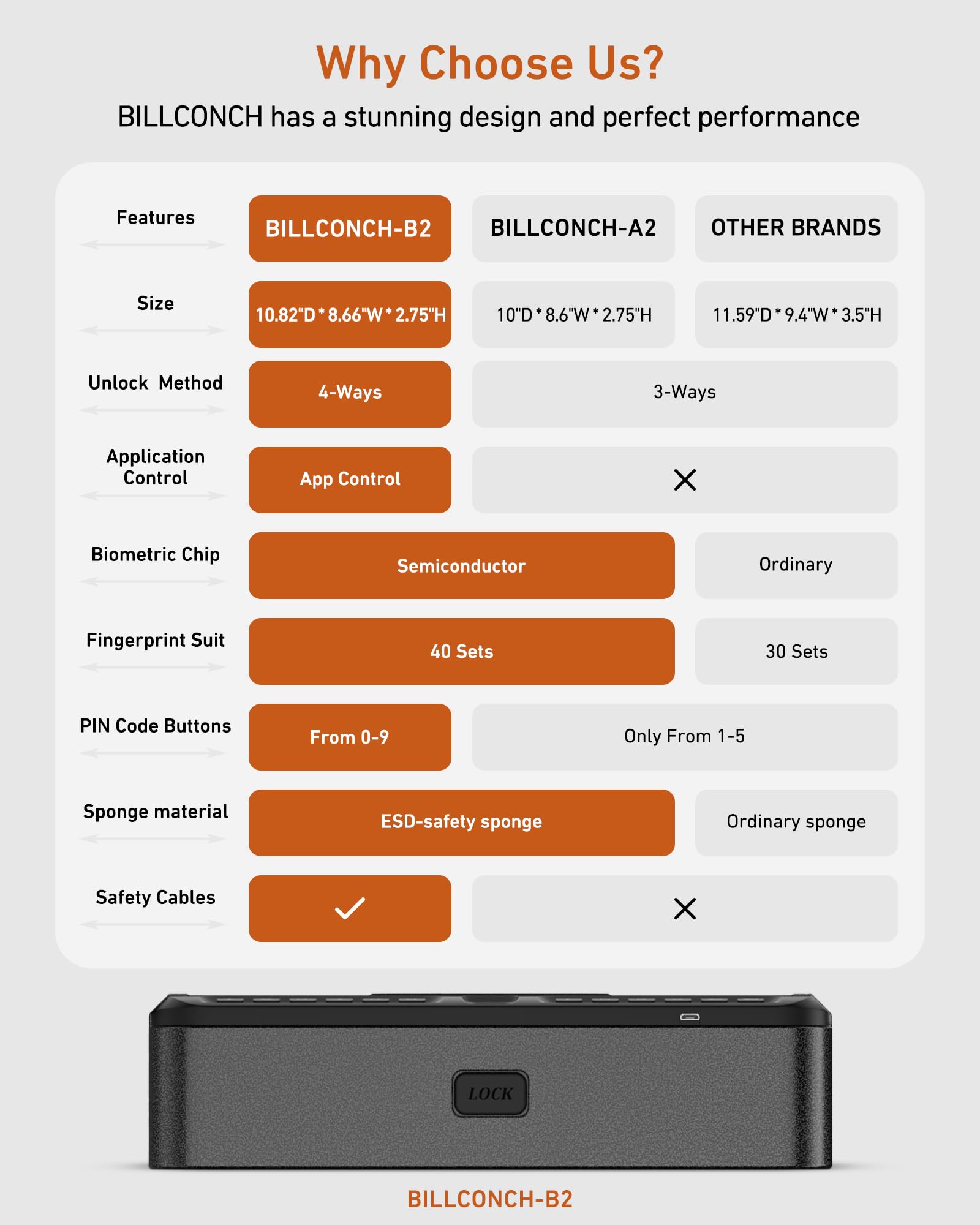 • 5-Star After-Sales Service: We are committed to providing top-notch intelligent gun safes to Protect your home! If you are not satisfied with the quality of the pistol safe product, or the results do not meet your expectations, please contact us through Amazon within the 365-day warranty period and we will provide you with exceptional service and support, including refunds or replacements and more. Rest assured that BILLCONCH's team of handgun safe professionals is always willing to help