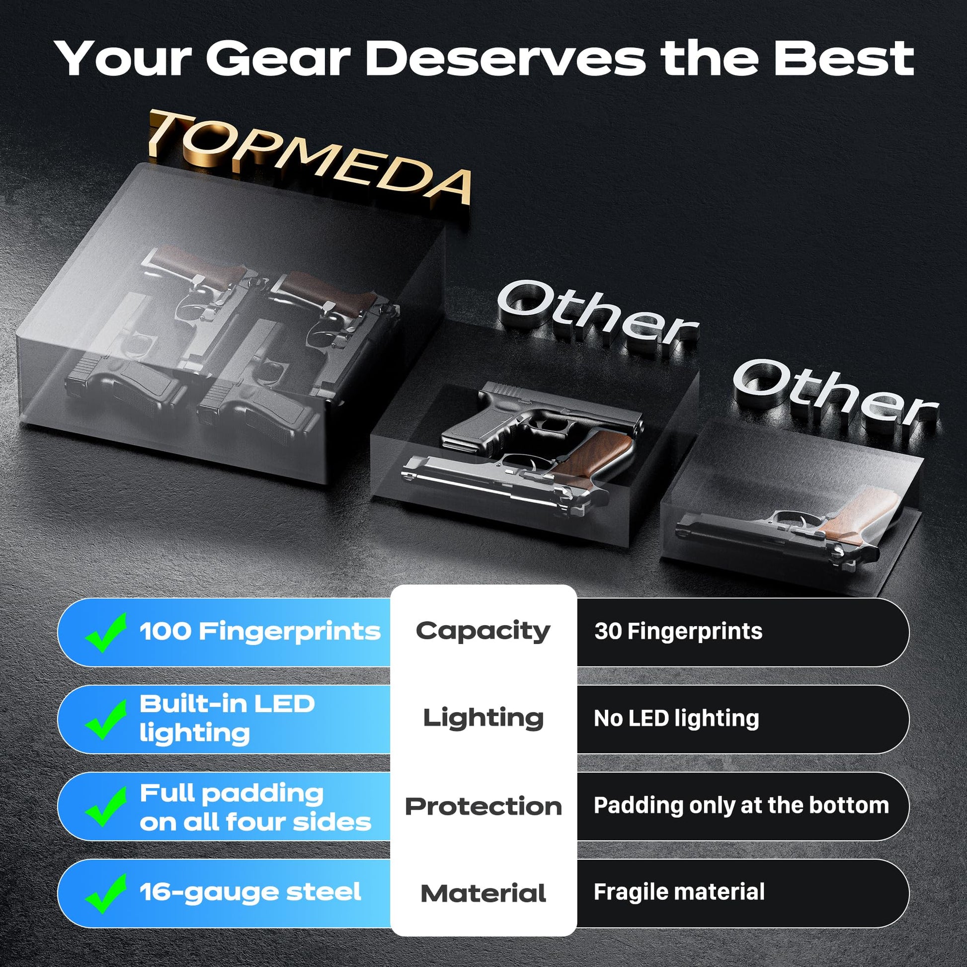 • TOPMEDA ADVANTAGES: Enjoy a worry-free one-year and reliable 24/7 response service. For any questions, please feel free to contact us directly. We are dedicated to providing friendly customer servicepistol safe, or in your car