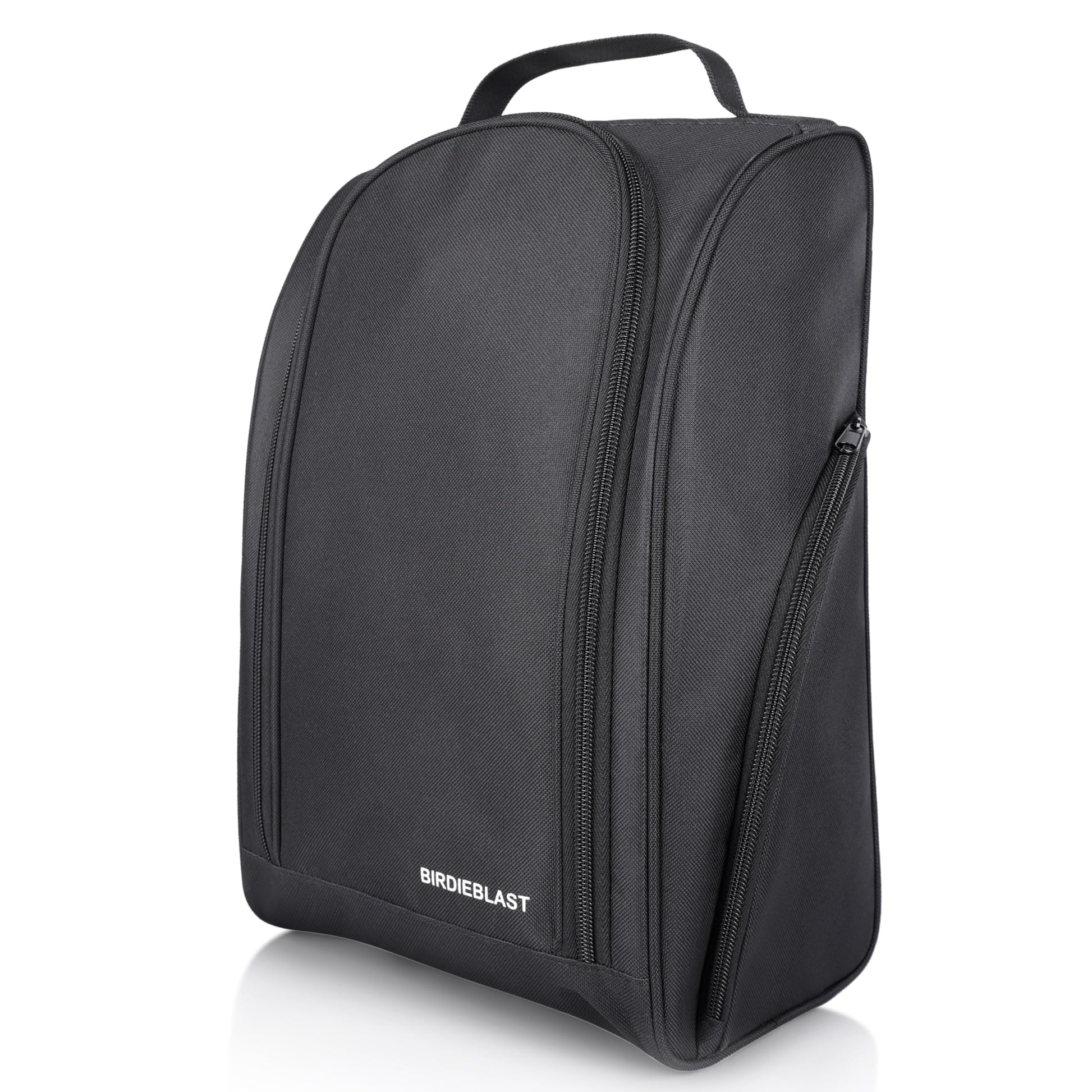 BIRDIEBLAST Golf Shoe Bag, Zipper Sports Shoe Strap Bag with Side Accessory Pocket for Storing Golf Accessories, Padded Golf Shoe Carry Bags with Clasped Strap Handle (Black)