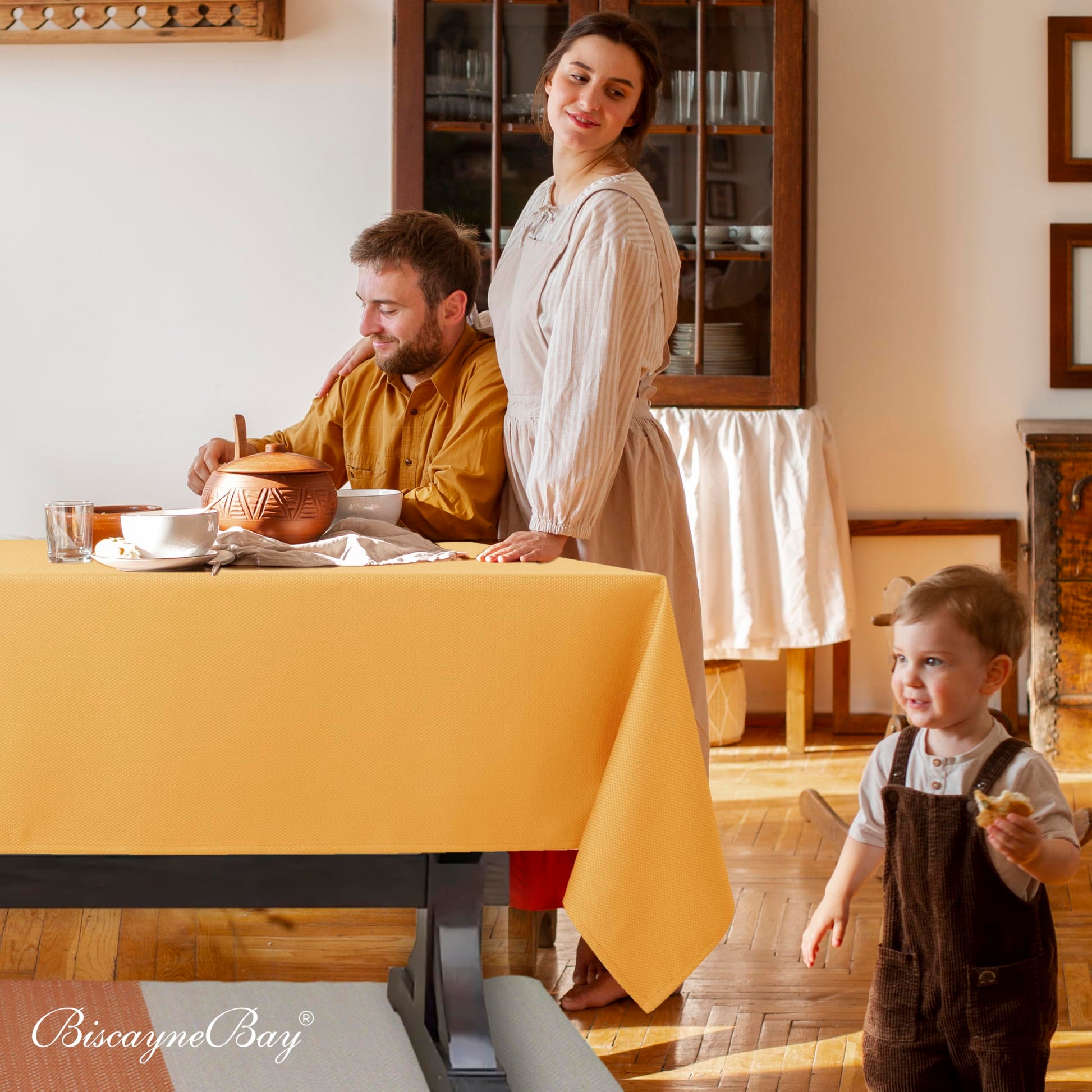 Biscaynebay Fall Tablecloth Textured Fabric 70x120 Inch Rectangular, Fall Gold Thanksgiving Autumn Harvest Water Resistant Fabric Tablecloths for Kitchen, Dining, Wedding, Parties Machine Washable