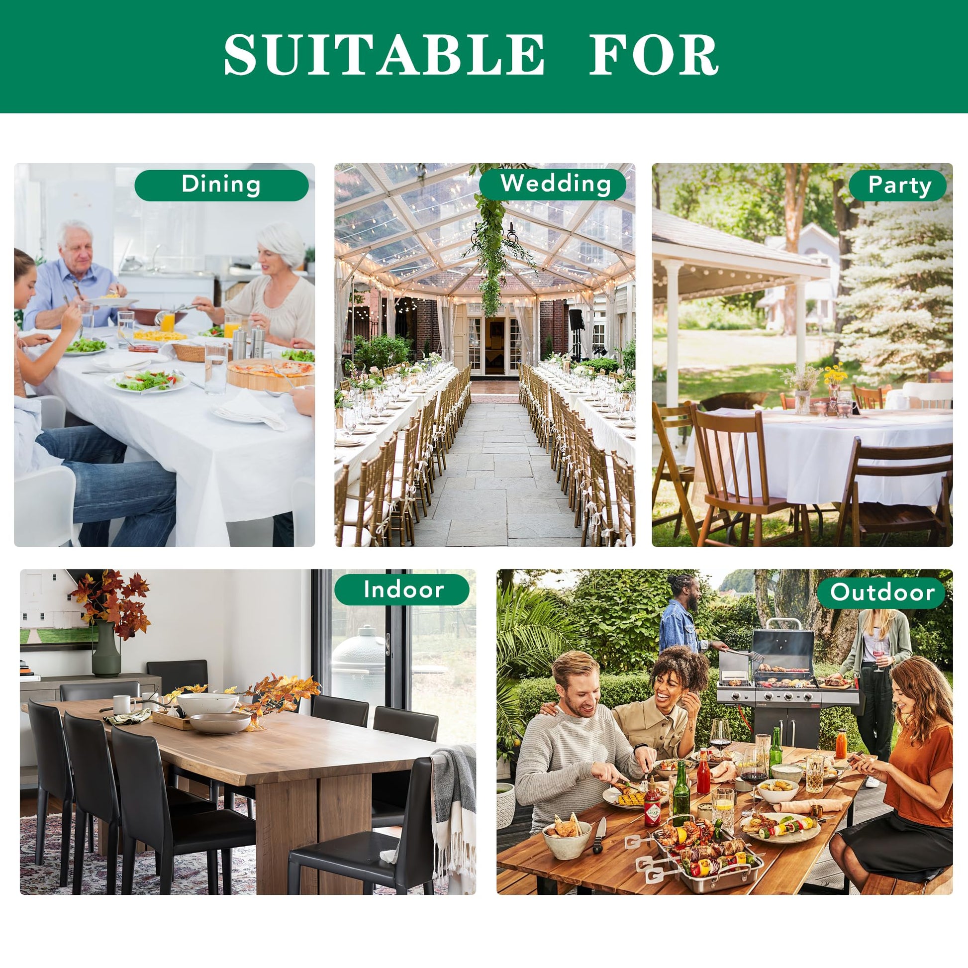 • Versatile Elegance for Any Occasion: Instantly elevate the ambiance for any event. Perfect for everyday family dining, kitchens, restaurants, outdoor garden parties, patio BBQs, holiday celebrations (like Thanksgiving and Christmas), birthday parties, wedding receptions, banquets, picnics, camping, and more. This tablecloth quickly enhances your table's aesthetic appeal and adds a touch of sophistication