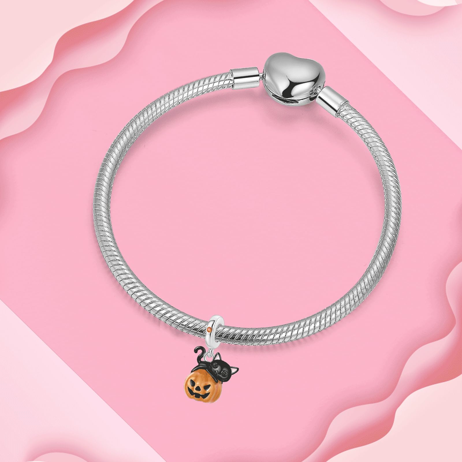 BIZK 925 Sterling Silver Charm for Bracelets and Necklaces Charms for Women Fashion Jewelry for Women Friend and Mother (Black Cat Pumpkin)