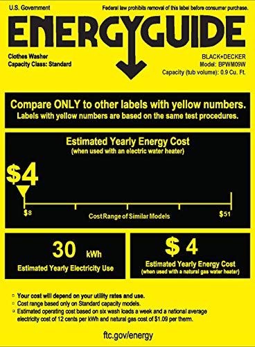 Details: When it comes to washing machines, this outstanding BLACK+DECKER portable washer (17.3” x 17.7” x 31.1”) is your ultimate solution to immaculately clean clothing for household use. There are 5 cycles to choose from with this fantastic 0.9 cu. ft. washer, which include Heavy, Gentle, Normal, Rapid, and Soak. Cold water temperature settings available with three water level choices for small, medium, and large loads. Inside this small washer (48.4 lbs.), you’ll find an incredible stainless steel tub that’s rust and corrosion-resistant with a quiet close top loading transparent lid. Because this unit is an impeller washer, it’s perfect for lingerie and delicates as it doesn’t have an agitator to cause entanglement problems. Also, you can use for soiled baby clothing and diapers, but must run them separately from other loads. You can also easily wash baby clothing and diapers, as well as lingerie without entanglement problems common with agitator washers. Place anywhere in your home or area with 2 rollers, 2 side handles, and 1 adjustable front leveling leg. This unit comes with a drain hose and quick connect sink adaptor. Also included are auto shutoff safety features and Child Lock protection. Get the high quality washing you deserve to live out your day with our amazing BLACK+DECKER portable washing machine. Reinforced packaging is included for total customer satisfaction.