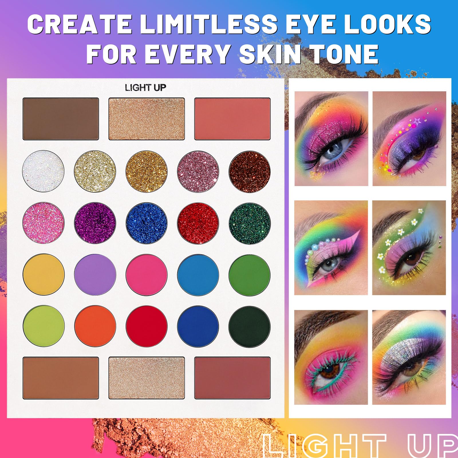• Soft and smooth powder and creamy buttery texture, perfectly pigmented mattes and glitters seamlessly blend together. High-intensity shades glide on easily, The colors are rich and perfect balanced allowing you to create more soft, classic, bold creative face makeup.