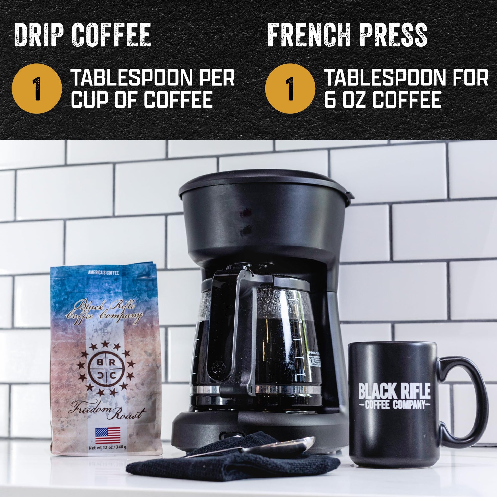 Black Rifle Coffee Company Ground Coffee Medium Roast - Roasted Blend Made from Pure Arabica Beans - Colombian & Brazilian Beans - Veteran Founded & American Made (Freedom Roast, 12oz Bag)