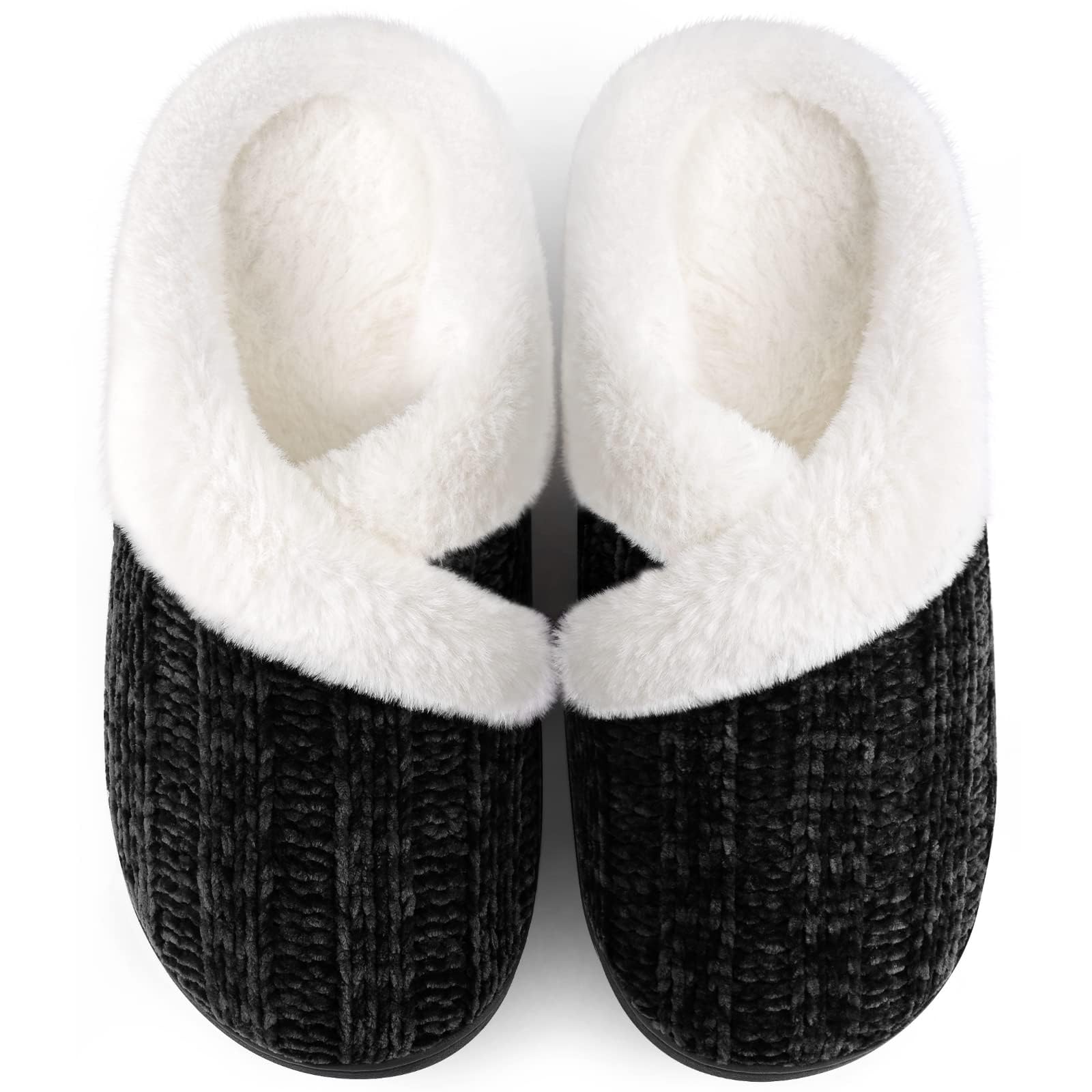 • [Womens House Slippers]:It is easy slip-on design fuzzy house slippers with breathable chenille knit upper and ultra-soft plush lining keep your feet warm all day and offers smoothing comfort, making your feet relaxed. With very low back, comfy women slippers offers comfortable wearing experience, warm but not sweaty, solid but not hard.