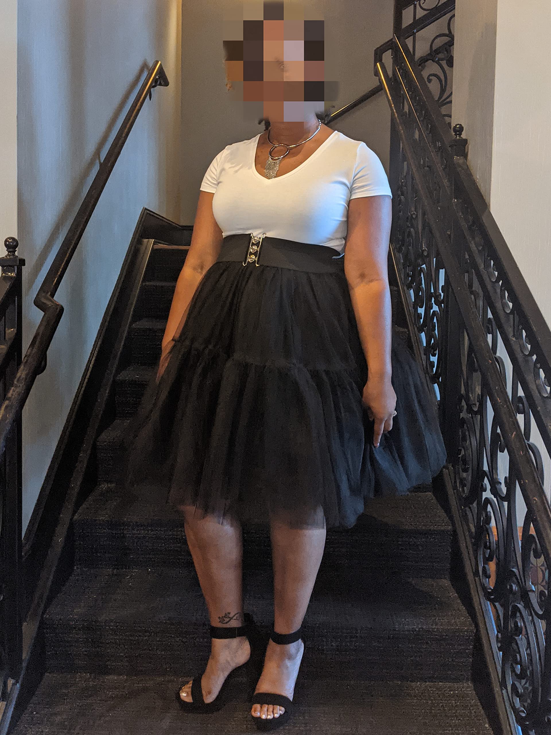 • WIDE SIZE RANGE: The length of the beetlejuice costume comes well just about your knees. Skirt length: 23.6', Waist(one size): 23.6'-39.4', The elastic band around the waist is SUPER stretchy and very forgiving, it can be easily accommodating women from size 2 to much fuller figures.