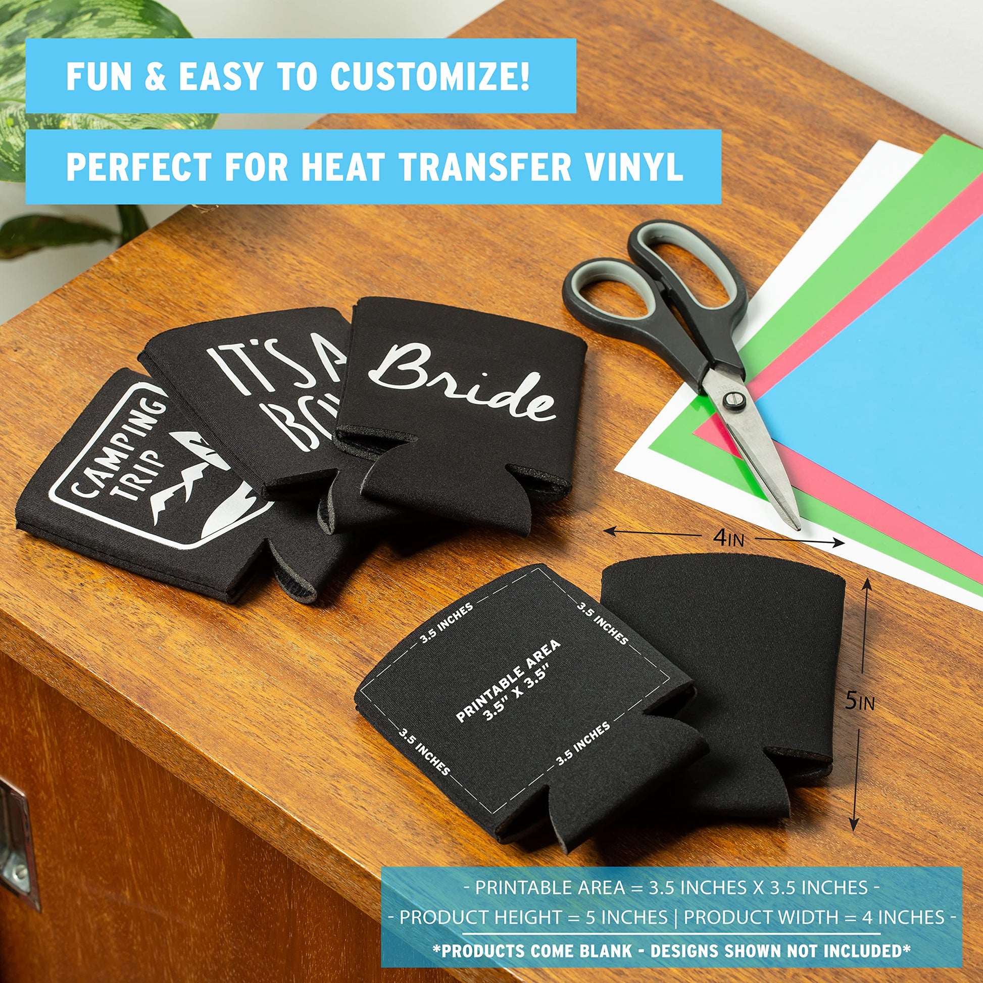 Blank Beer Can Coolers Sleeves (14-Pack) Soft Insulated Beer Can Cooler Sleeves - HTV Friendly Plain Black Can Sleeves for Soda, Beer & Water Bottles - Blanks for Vinyl Projects Wedding Favors & Gifts