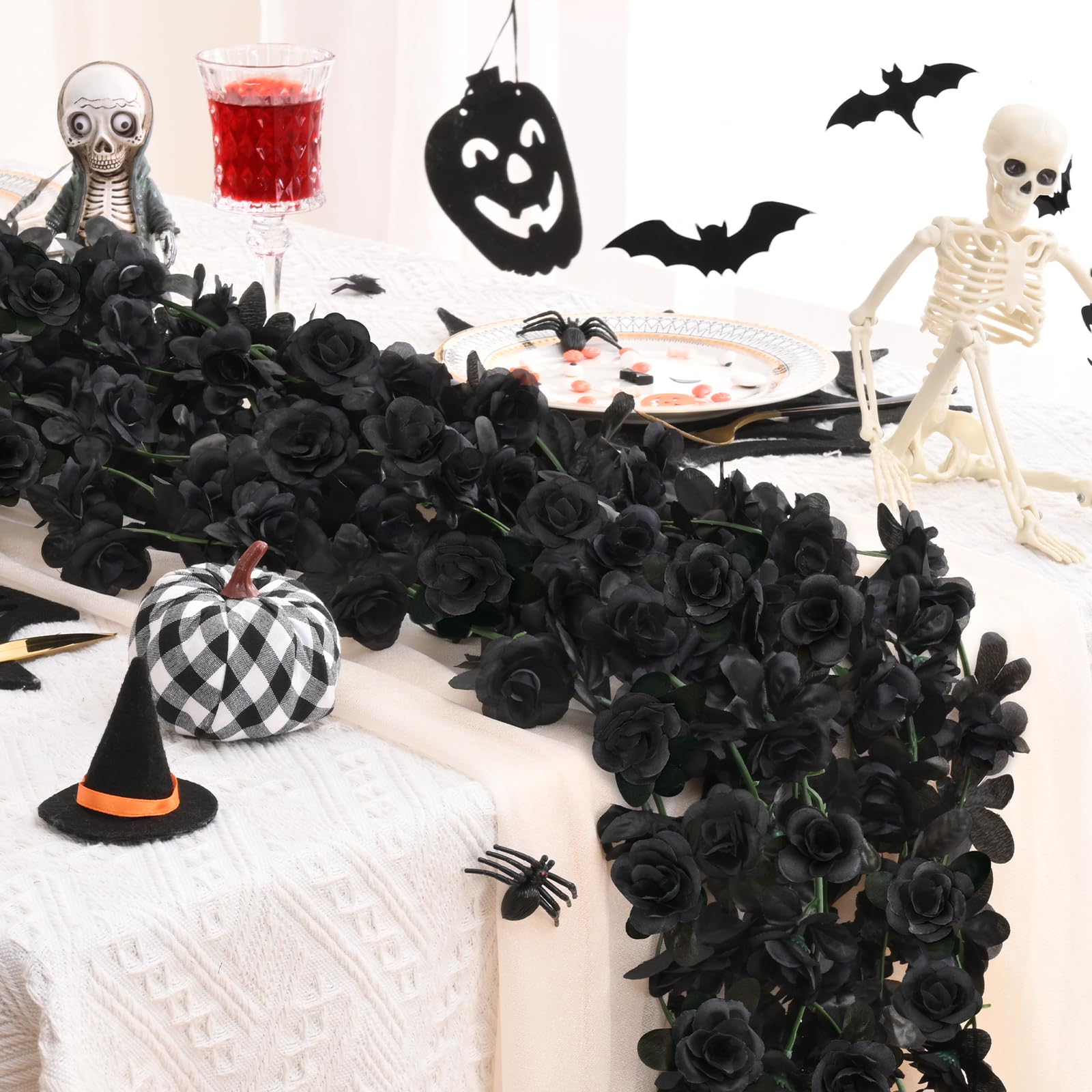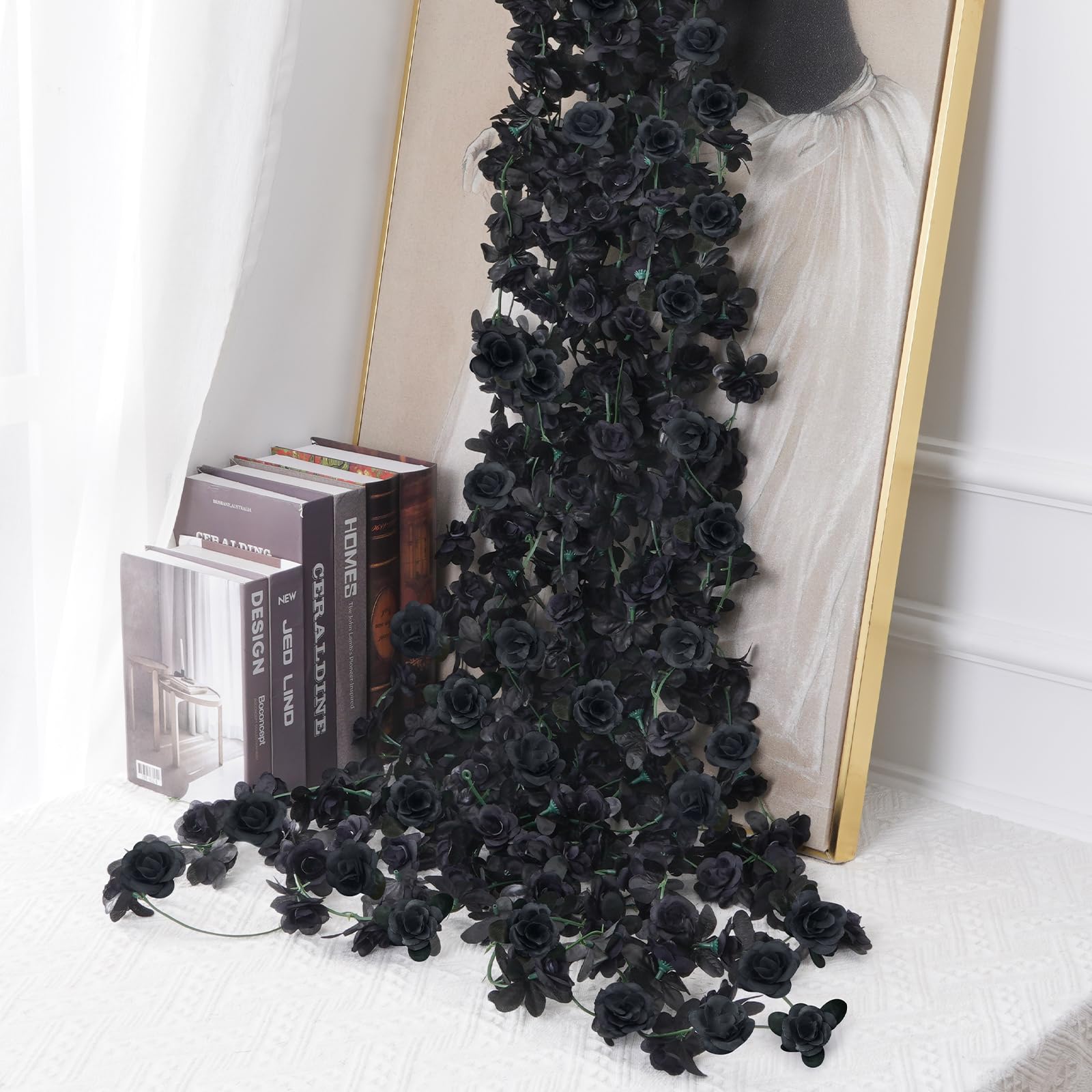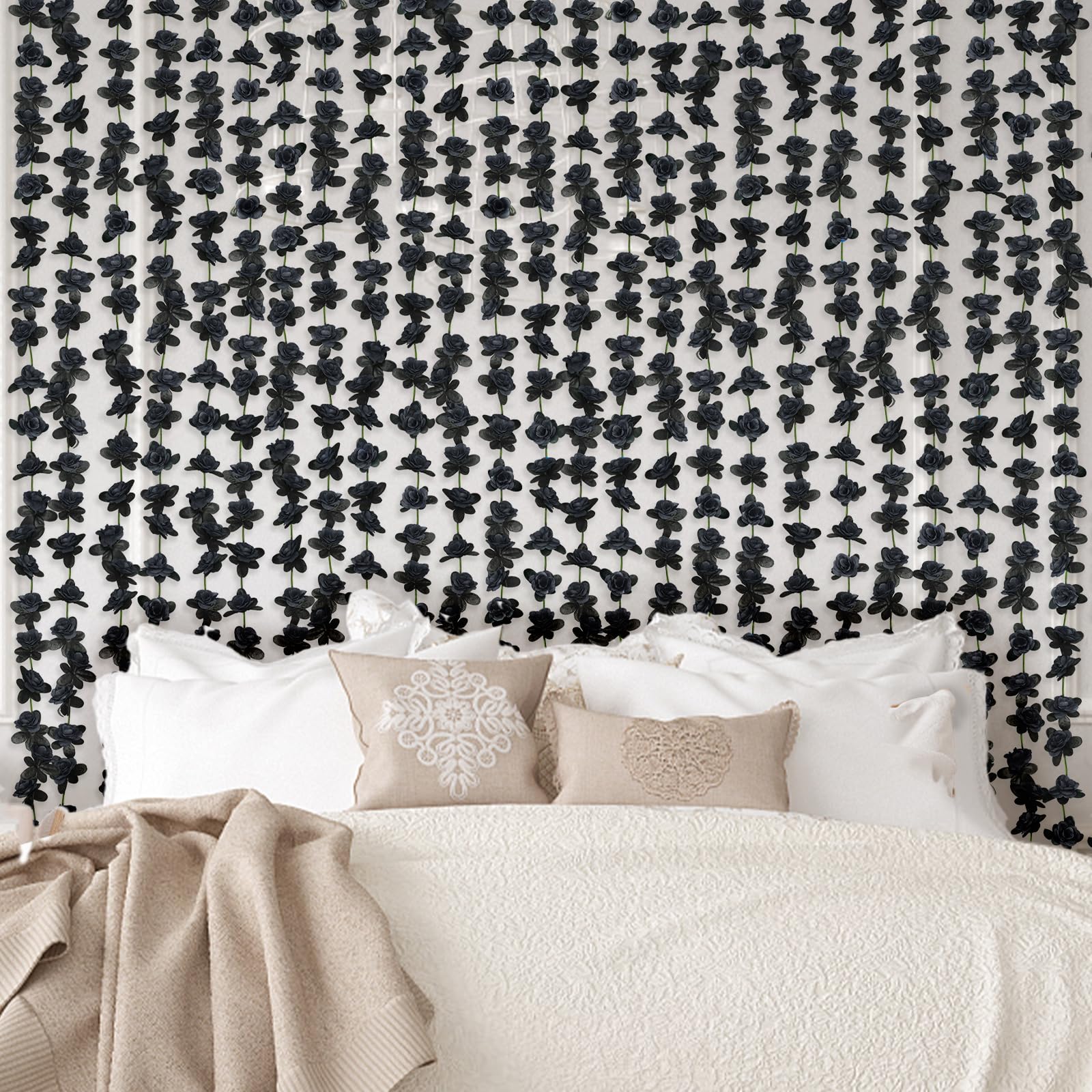 • [Create a Romantic Atmosphere]: Our 2-piece set of artificial rose vines is perfect for adding a touch of elegance to any space. Each vine is 8.2 feet long and features 45 lifelike flowers and leaves. Flower head is black.