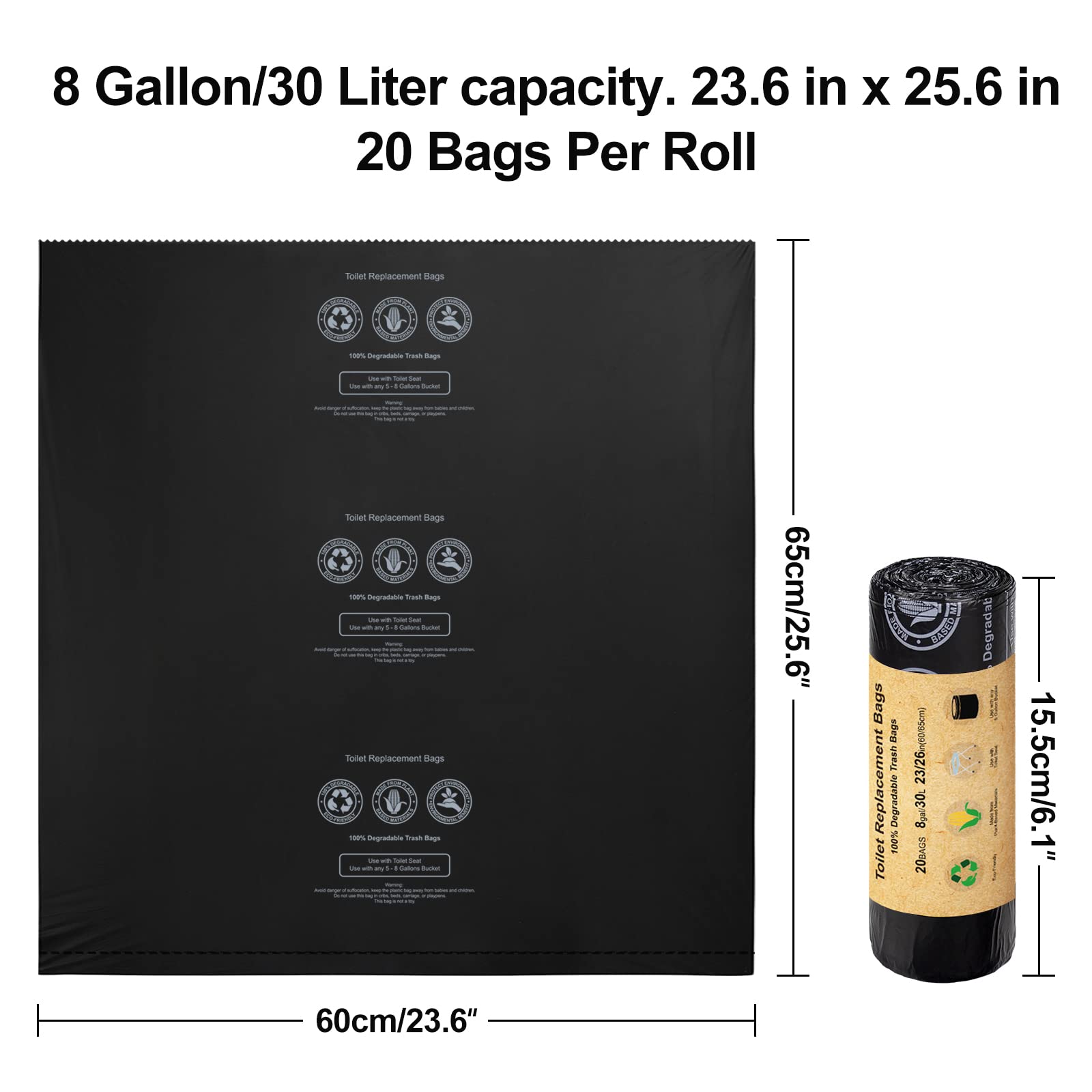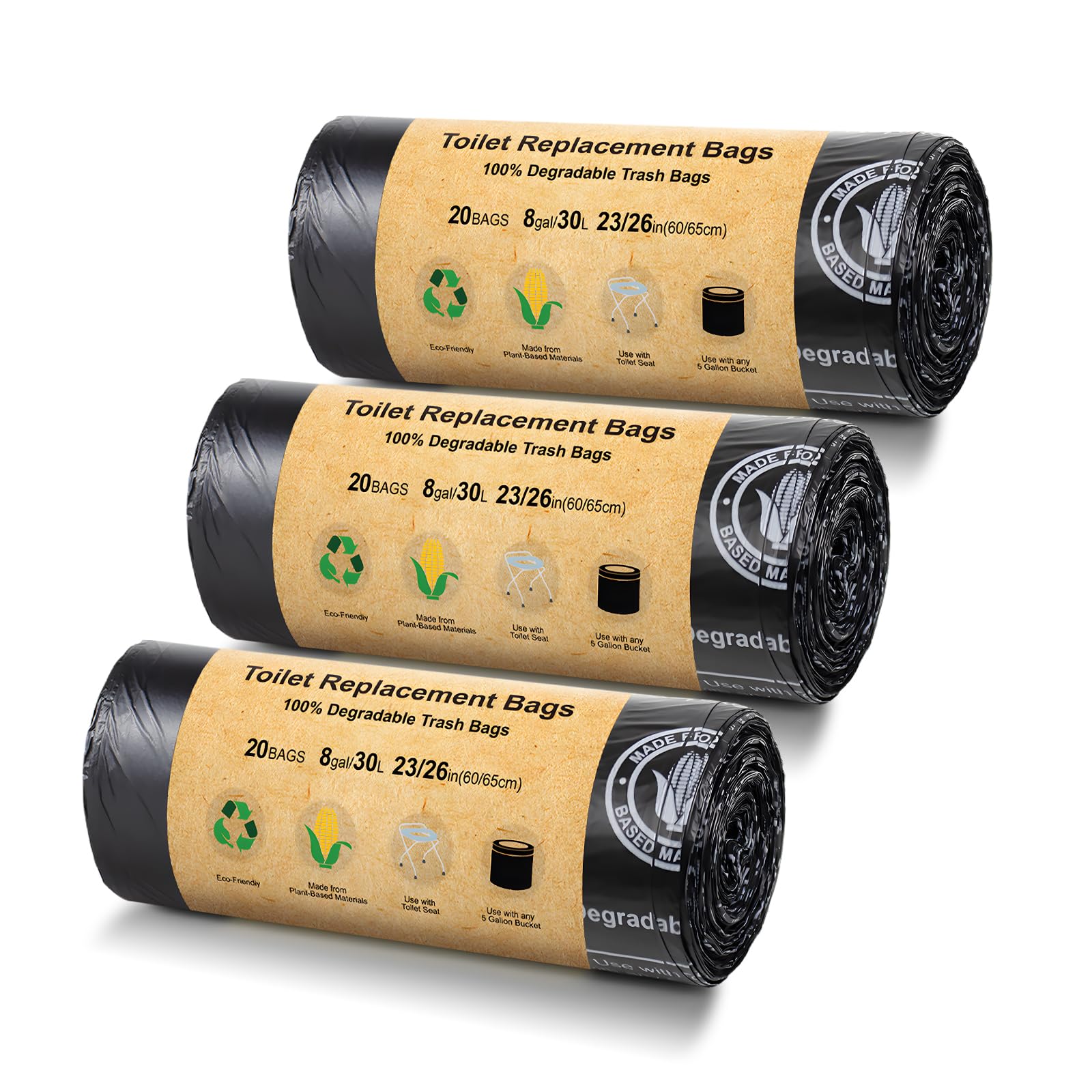 BLIKA 60 Count Toilet Replacement Bags, 8 Gallon, 30 Liter, Heavy Duty 1 Mil, Compost Bags 8 Gallon, Camping Toilet Bags for Portable Toilet, Car Travel, Camping, Long Trips