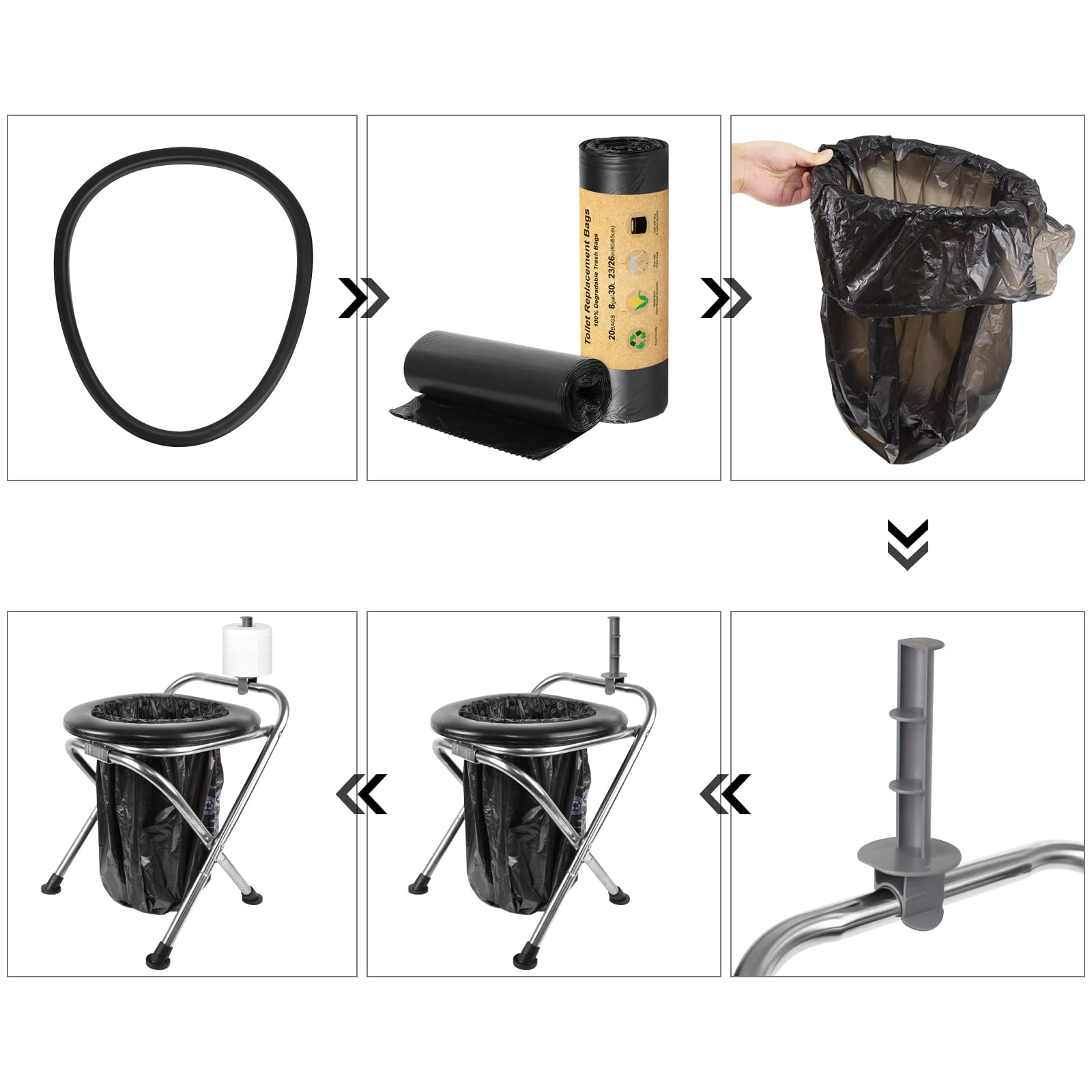 • 【Package List】Simple assembly required. 1X Portable Folding Toilet Seat + 1X Plastic Ring+ 1X Carry Bag + 1X Toilet Paper Holder. Package does NOT come with toilet bags, you need to order them separately, ASIN: B09696CYSY. We stand by our products! If you're not satisfied within 30 days, we'll provide a replacement to ensure you get the quality you deserve.