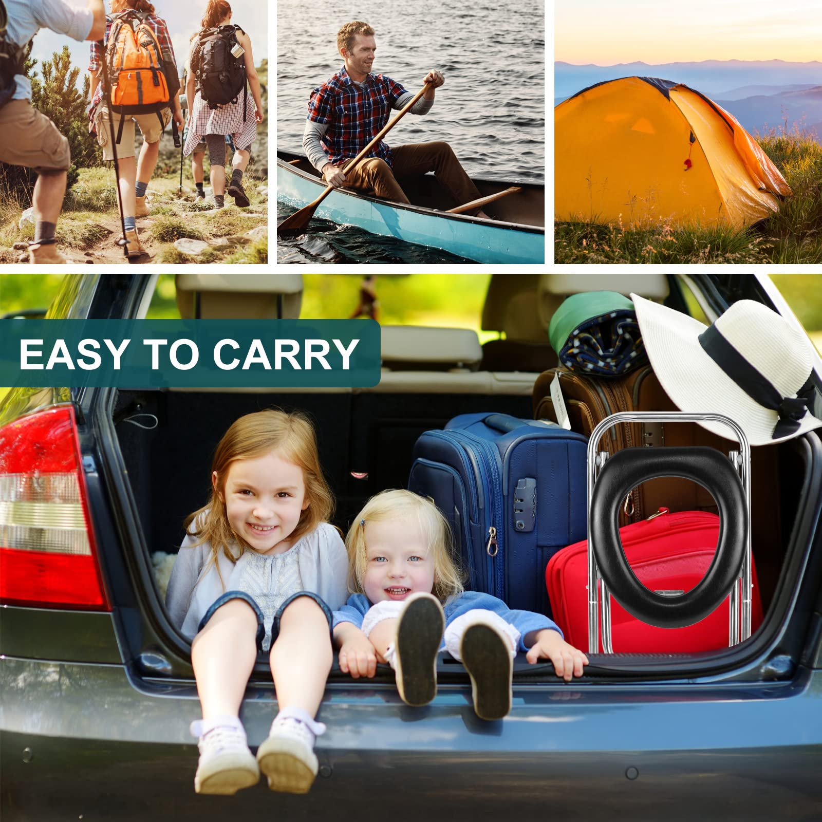 BLIKA Portable Toilet for Camping, 350LBS Stainless Steel Foldable Camp Travel Toilet with Soft Seat for Adults, Portable Potty for Camping, RV Travel, Road Trips