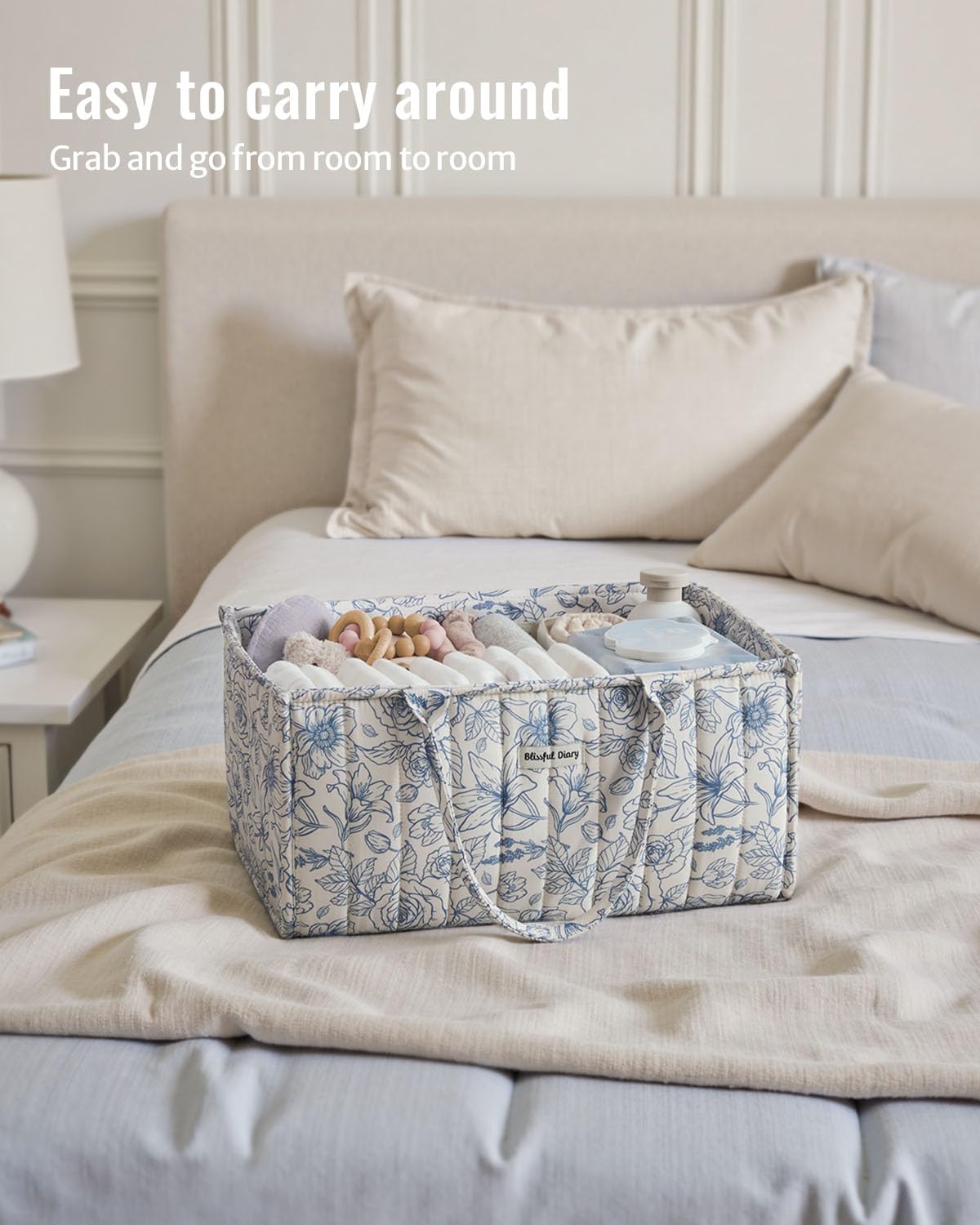 Blissful Diary Floral Diaper Caddy Organizer, Stylish Nursery Storage Basket, Gift for Baby Shower, Baby Registry Must Have, Newborn Essentials, Blue Floral