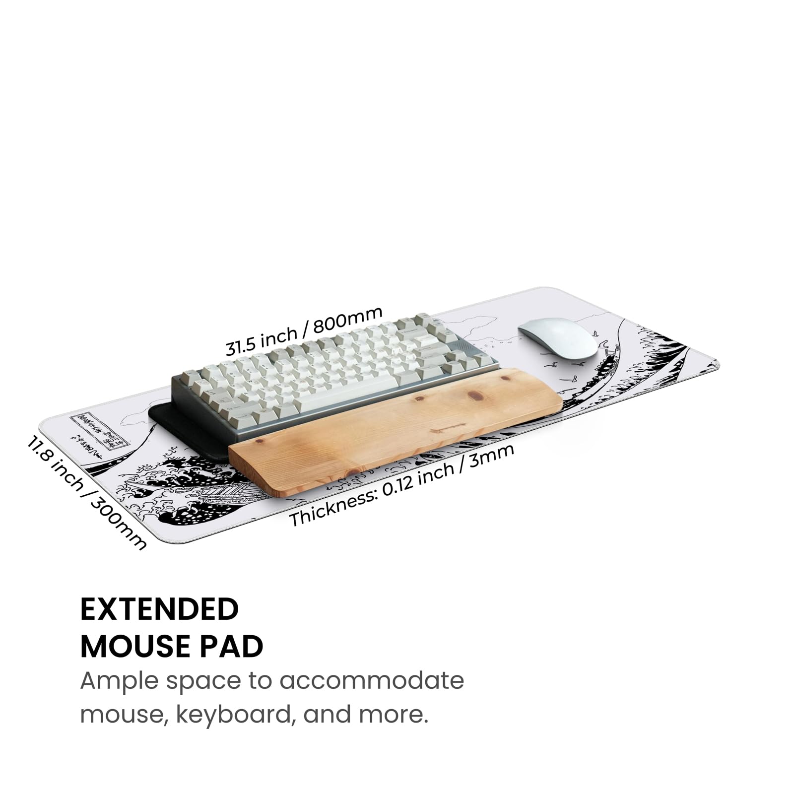 BLITZPAW Long Gaming Mouse Pad 31.5 x 11.8 inches, Extended Anime Mousepad, Large Mouse Mat with Non-Slip Base, Full Keyboard Mat with Stitched Edges for Gaming and Office (Grey White Wave)