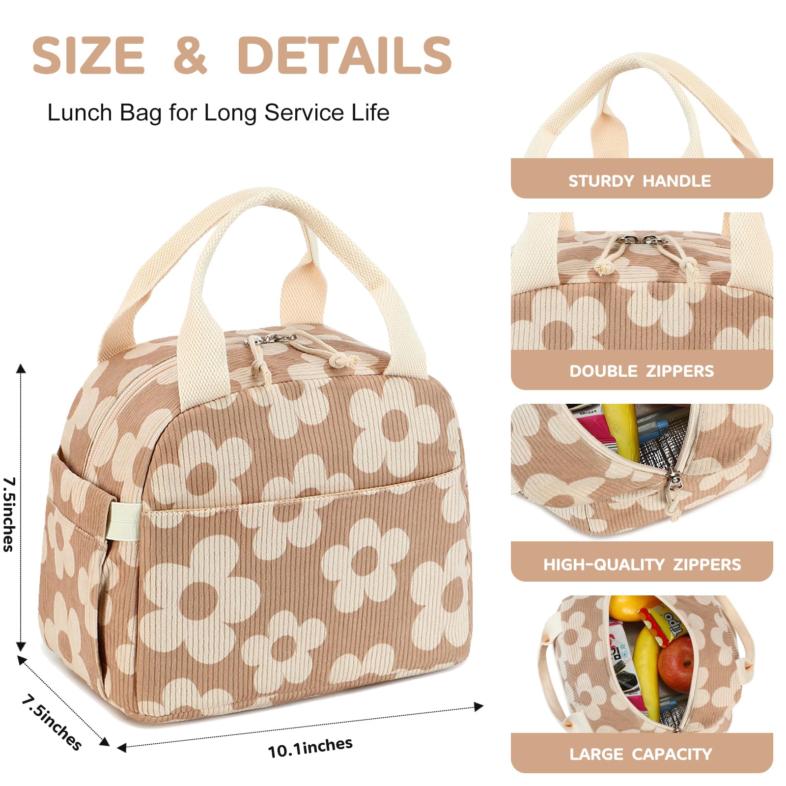 Bluboon Lunch Bag for Women Men Cute Corduroy Lunch Tote Bags Reusable Insulated Lunch Box Large Capacity Reusable Insulated Cooler for Work Picnic or Travel