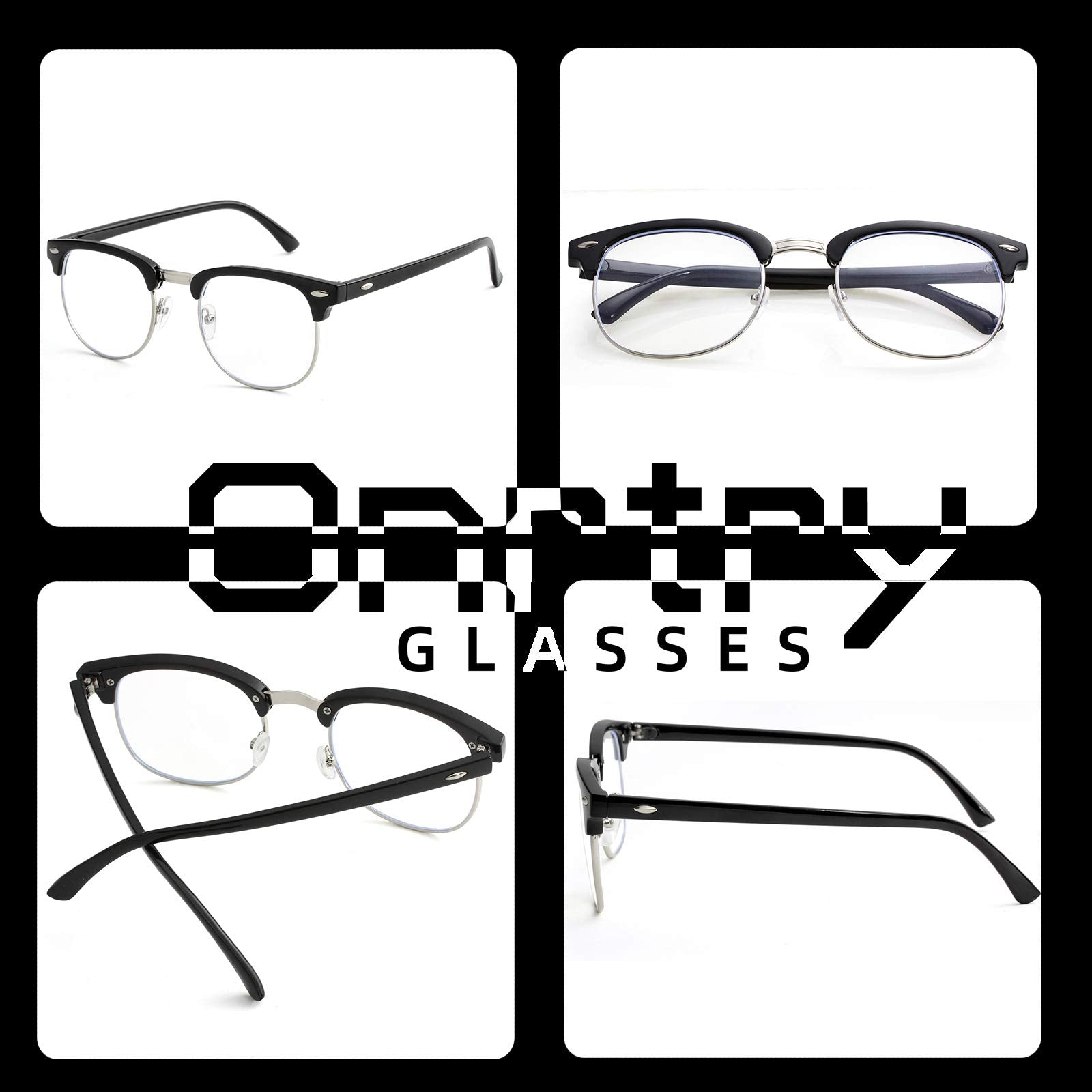 Blue Light Blocking Glasses for Women Men Classic Semi Rimless Fake Nerd Anti Blue Ray Computer Eyeglasses (Bright Black/Silver)